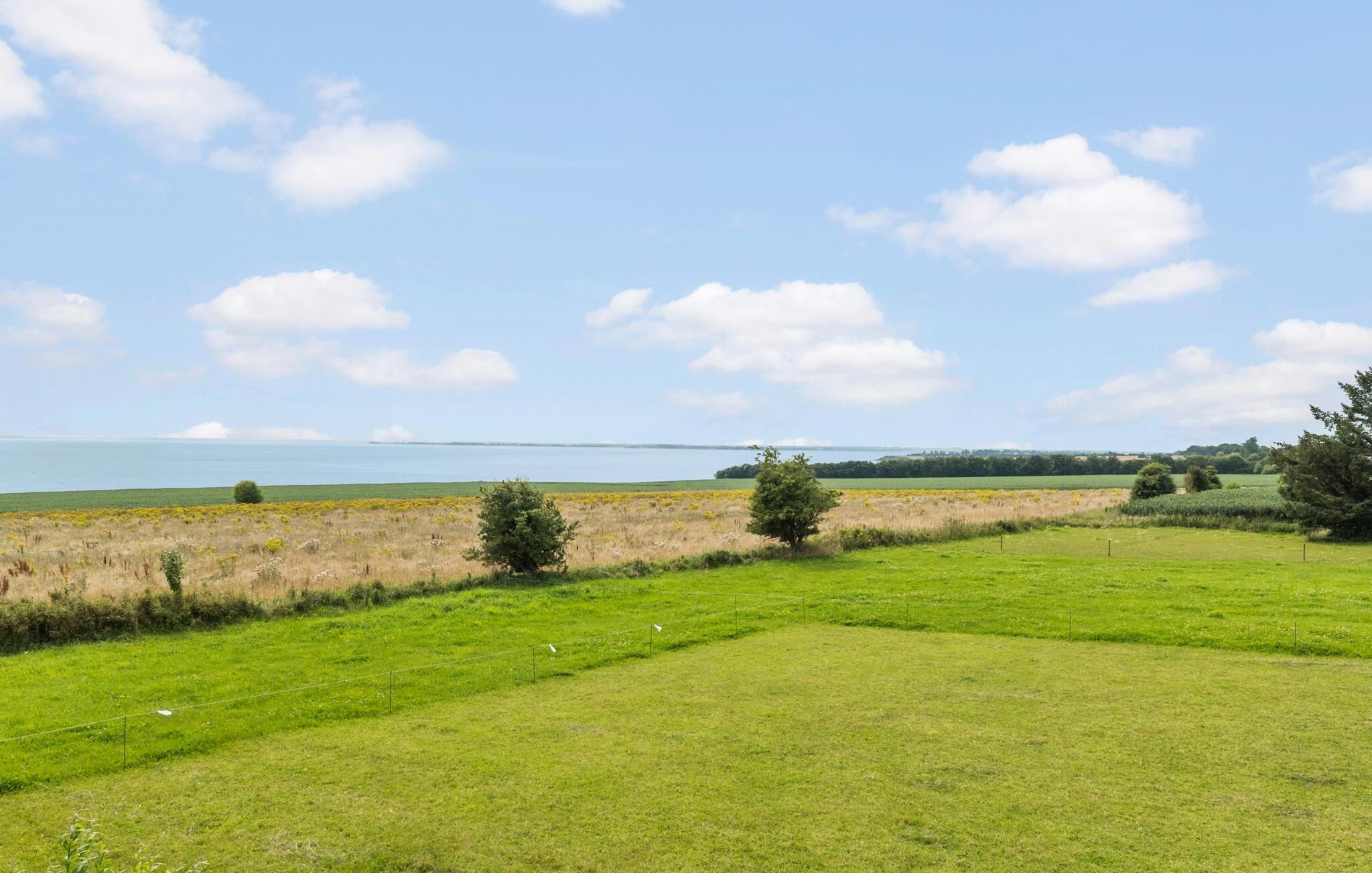 Rummeligt sommerhus ved Sillerslev Strand med panoramaudsigt, brændeovn og stor have til familieaktiviteter.