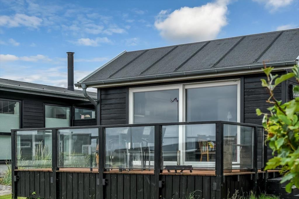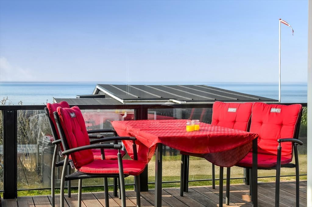 Fra opholdsrummet har du direkte udgang til en sydvestvendt terrasse, hvor du kan bruge dagen på at slikke sol, læse en god bog eller blot beundre den betagende udsigt over Ho Bugt. Når aftenen falder på, og solen langsomt synker ned i horisonten, kan du sidde her med et glas vin eller en kølig forfriskning, mens du betragter solnedgangens smukke farvespil over vandet. Det er øjeblikke som disse, der gør ferien helt speciel! Rundt om huset finder du for øvrigt flere terrassekroge, hvis du trænger til et sceneskifte, og der er også en lille græsplæne, der er godt afskærmet af plankeværk ind mod naboerne.