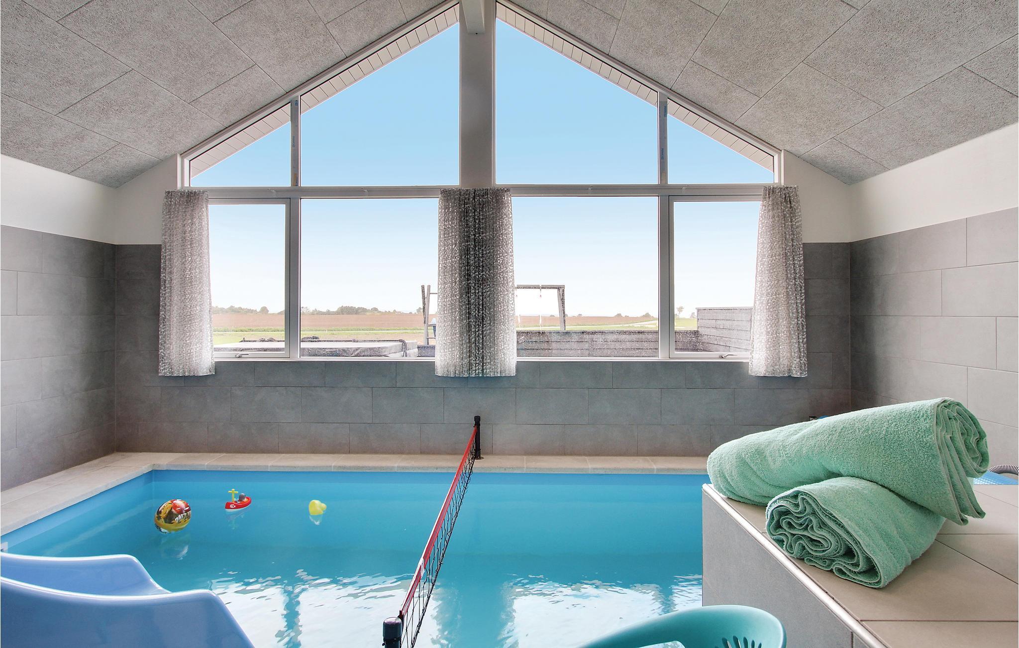 Swimmingpoolhus med wellness og aktivitetsrum nær Skåstrup Strand, perfekt for familie og venner med panoramaudsigt over Lillebælt.