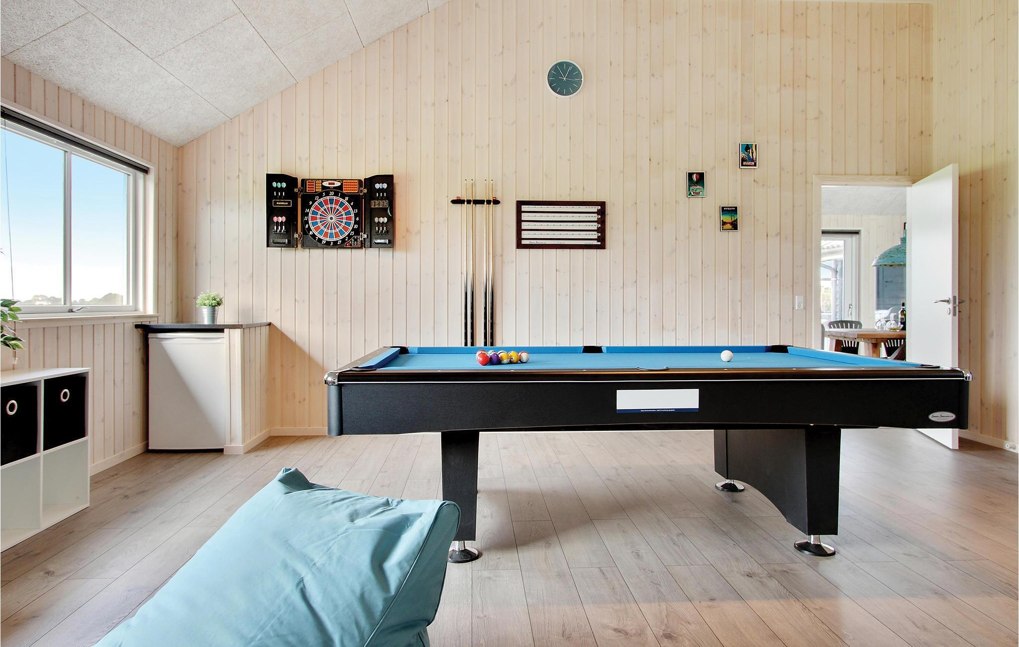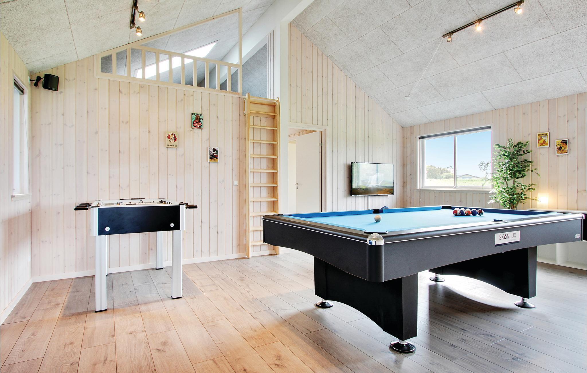 Husets aktivitetsrum med billard/bordtennis, dart og fodboldspil indbyder til masser af hyggeligt samvær for alle aldre. Trænger I efter dysterne til kolde drikkevarer og mere afslappende aktiviteter, så står også køleskab, tv-hjørne og Playstation4 klar til brug. Dertil er huset udstyret med Sonos lydanlæg, så I har mulighed for at spille lige netop det musik, I kan lide.
