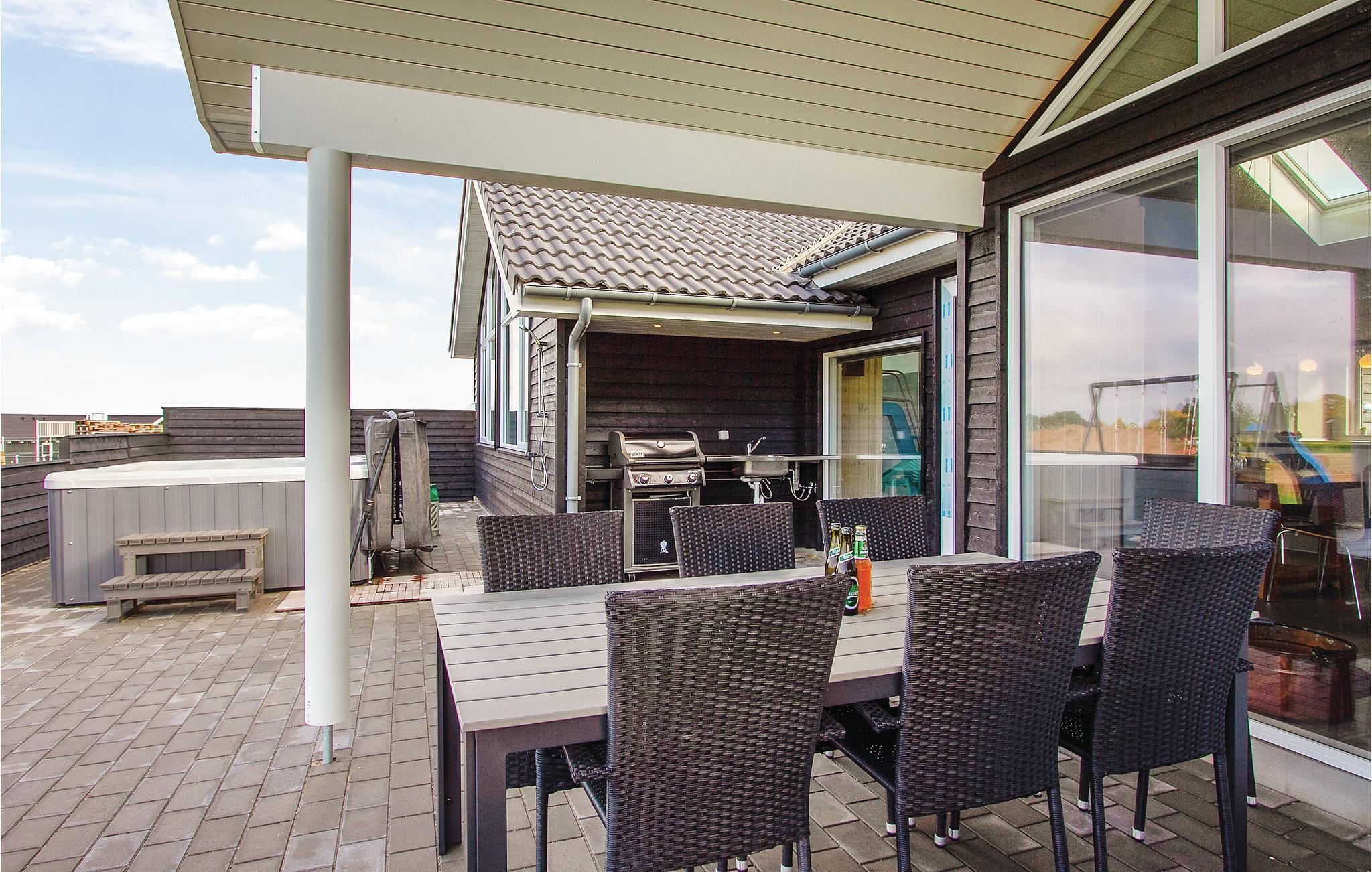 Den danske sommer kan nydes på husets store og delvist overdækkede terrasse med gode havemøbler, og med gasgrill og udekøkken med vask/fiskerenseplads kan feriens menu også tilberedes udendørs. I haven kan hoppes på trampolin, spilles fodbold eller solbades, og til de yngste gæster er der gynge og sandkasse. Ved huset finder der rigeligt med p-pladser ligesom der forefindes et udendørs stik til ladning af el-biler.