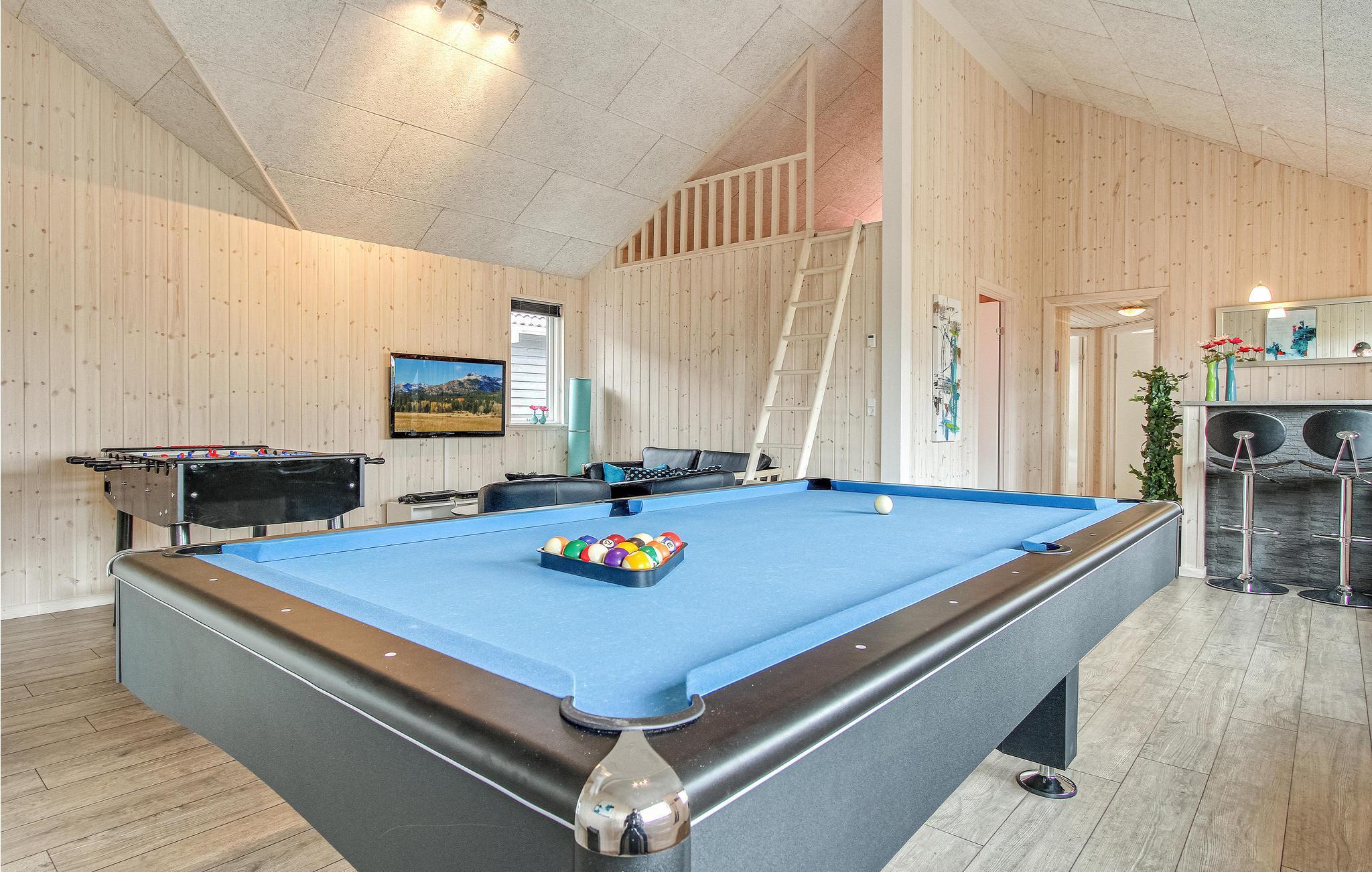 Et spændende og flot feriehus, hvor der er lagt vægt på såvel god indretning som smag for de små detaljer. Huset passer til hele familien, hvor børnene kan bruge energien i den store poolafdeling. Derudover findes et aktivitetsrum med bordtennis og billard samt en lille bar med køleskab, hvor de foretrukne drinks kan mikses. Den store hems vil helt sikkert være et hit hos børnene. Husets køkken er meget veludstyret og dimensioneret til husets størrelse med bl.a. 2 komfurer og 2 opvaskemaskiner samt god plads i køleskab og fryser. Huset ligger i et dejligt og naturskønt område, og den familievenlige sandstrand ligger indenfor gåafstand fra huset. Også perfekt til en vandretur i naturen. Aconto forbrug og slutrengøring betales kontant i huset sammen med de øvrige forbrugsomkostninger. Sengelinned, håndklæder, barneseng og –stol kan lejes mod betaling på det lokale kontor.