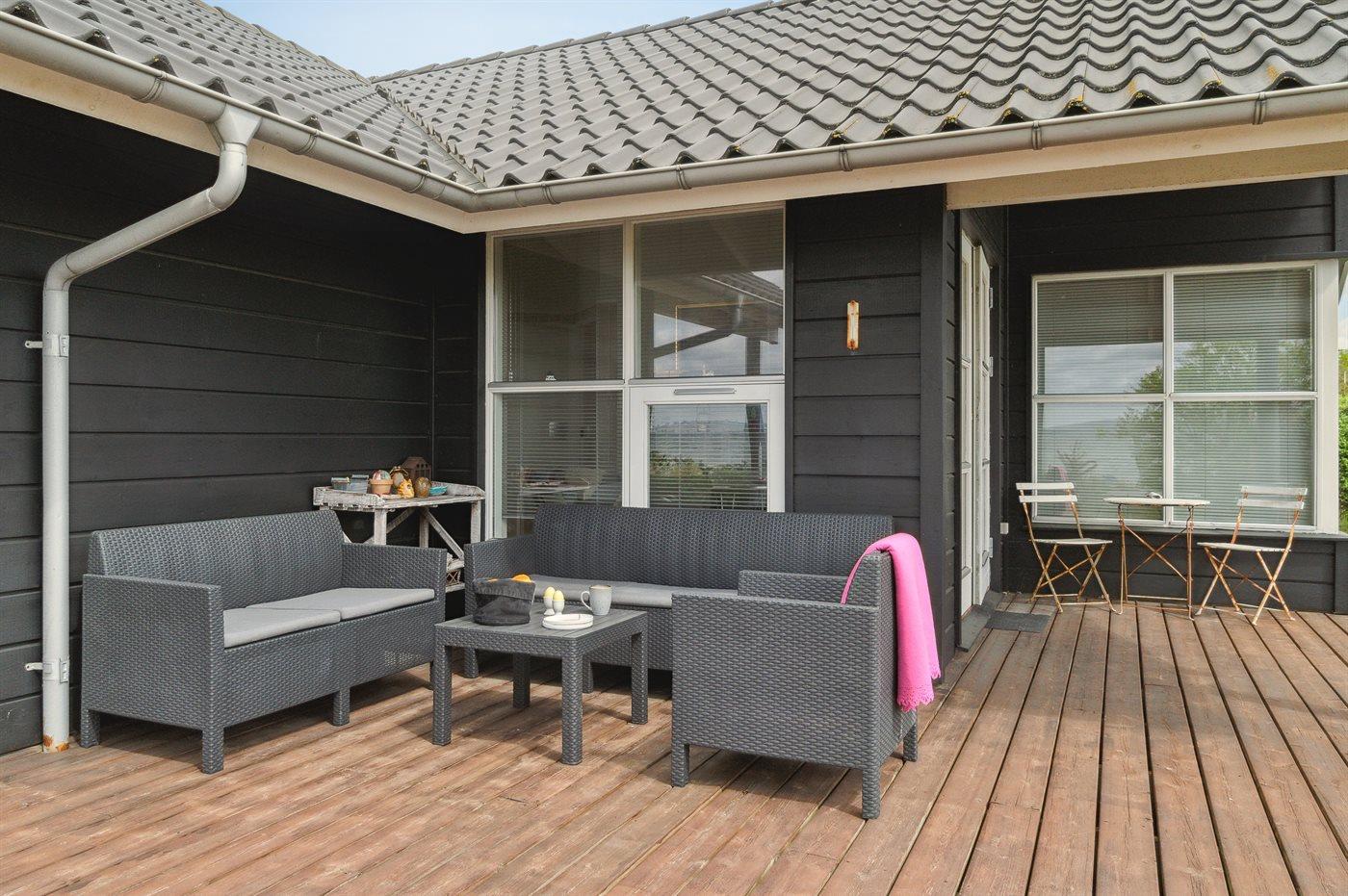 Gården er rummelig og giver plads til parkering. Derudover er den tidligere garage omdannet til en slags udestue, hvor man kan sidde længe om aftenen, eller når man skulle have fået nok af den dejlige havluft på terrassen.