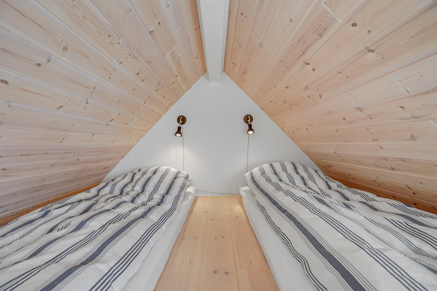 Sovepladserne fordeler sig på: 2 sovepladser i sovesofa (dobbelt). 2 sovepladser på madrasser. 2 af disse sovepladser befinder sig i opholdsstuen og 2 af dem befinder sig på hemsen.