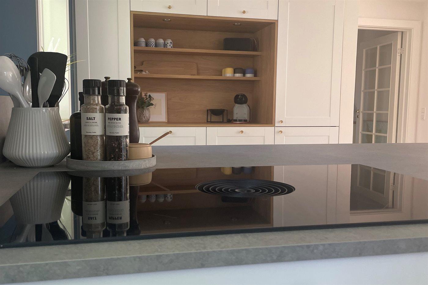 Køkkenet er udstyret med 2 køleskabe. Der er 4 induktionskogeplader, 2 varmluftovne, mikrobølgeovn samt opvaskemaskine.