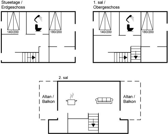 Der er i alt 4 soveværelser. Sovepladserne fordeler sig på: 8 sovepladser i dobbeltsenge. Derudover er der 1 stk. barneseng.
