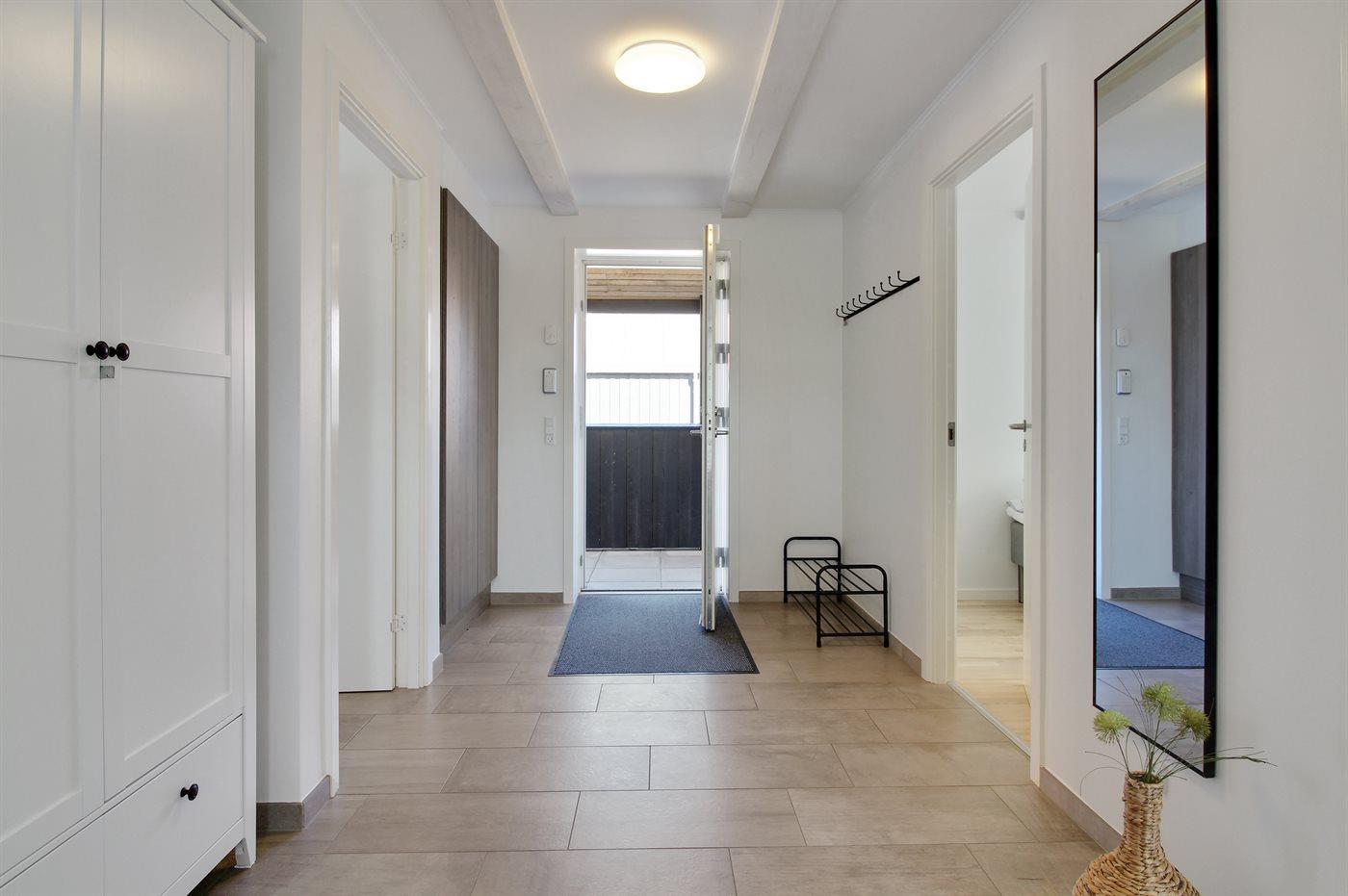 Sommerhuset egner sig til 6 personer. Ferieboligen er på 127 m², er i 2 plan, og er bygget i 2018. Det er ikke tilladt at medbringe husdyr. Der er gulvvarme i alle klinkegulve. Ferieboligen har kombineret vaskemaskine og tørretumbler. Frysekapacitet på 60 liter.