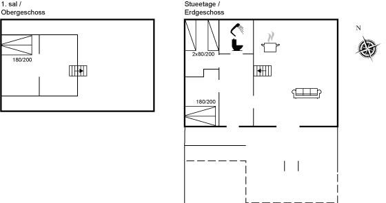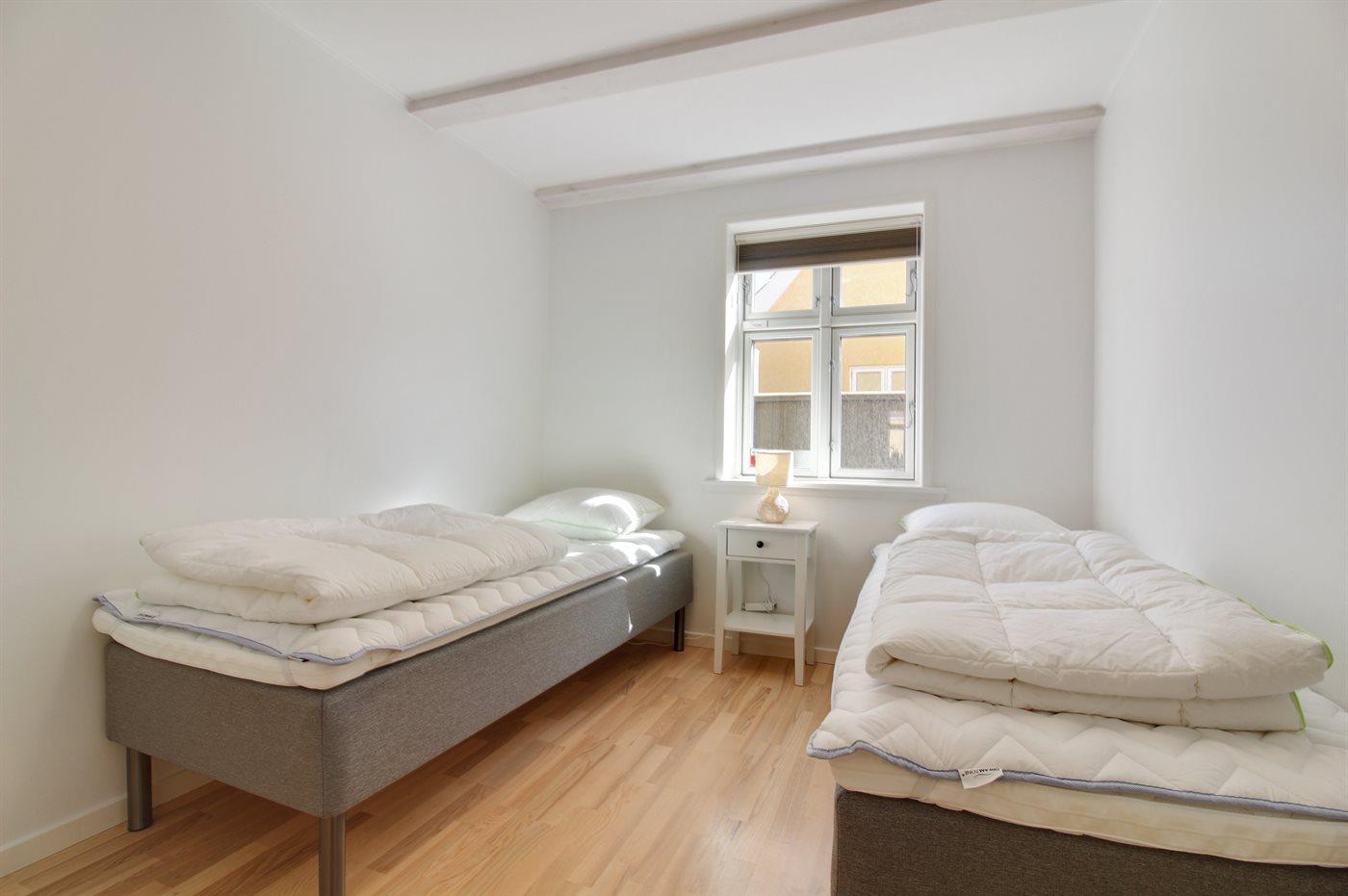 Der er i alt 3 soveværelser. Sovepladserne fordeler sig på: 4 sovepladser i dobbeltsenge. 2 sovepladser i enkeltsenge.