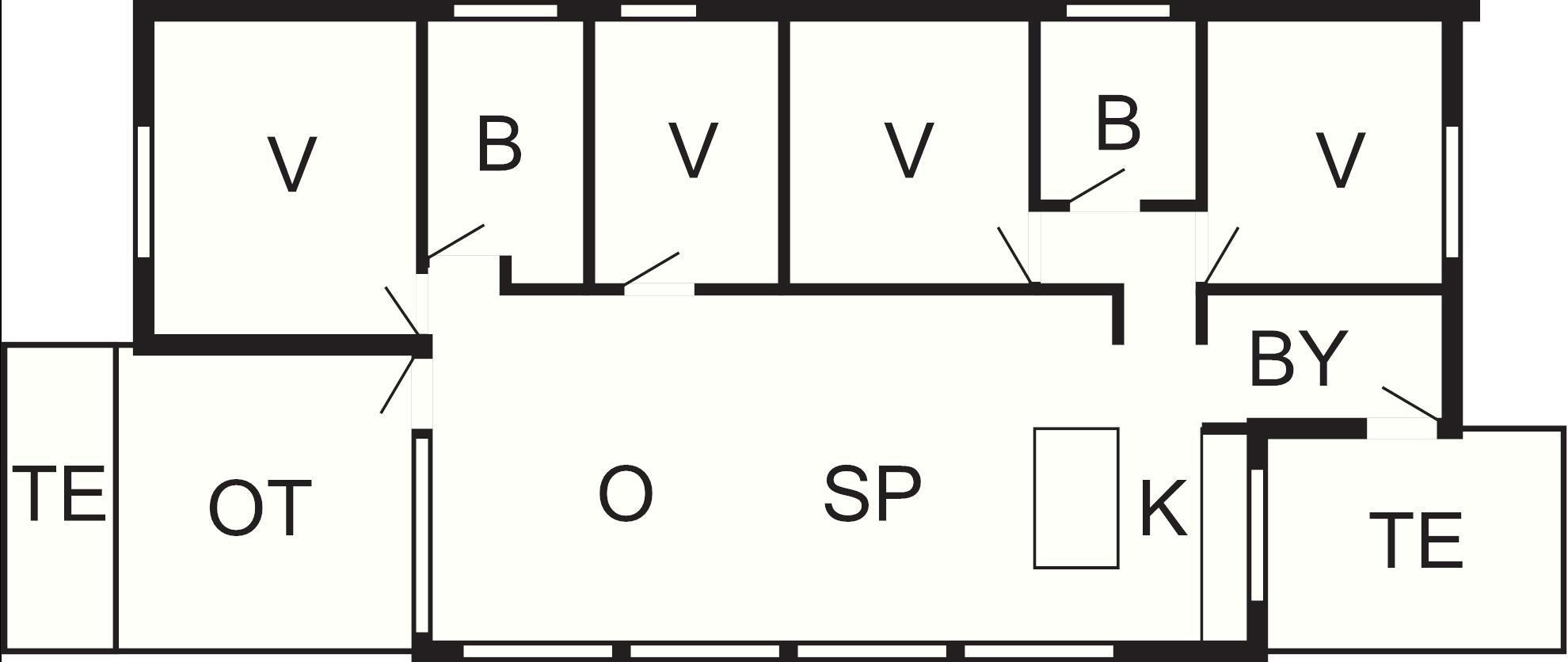 4 Soveværelser: (1DS)+(1DS)+(1DS)+(2K), barneseng