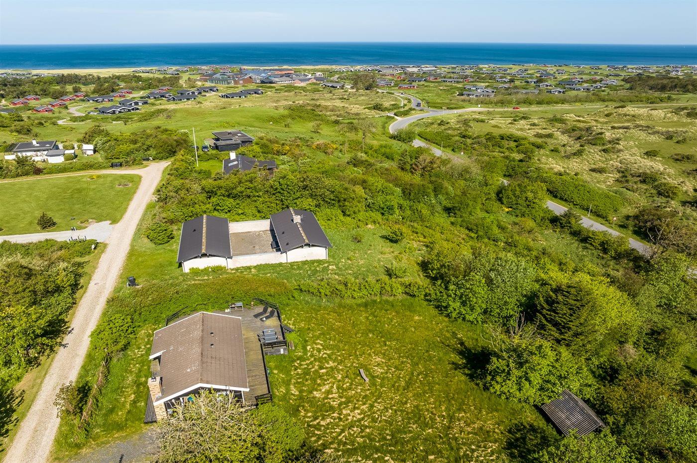 Ferieboligen er beliggende på en 2600 m² stor naturgrund. Der er 932 m til havet. Nærmeste forretning er beliggende i en afstand af 500 m. Til ferieboligen hører 60 m² terrasseareal. Der er redskabsrum. Parkering ved ferieboligen.