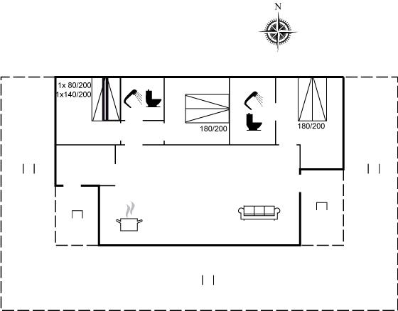 Der er 2 badeværelser med bruseniche og 2 toiletter. Der er gulvvarme på 2 badeværelser.