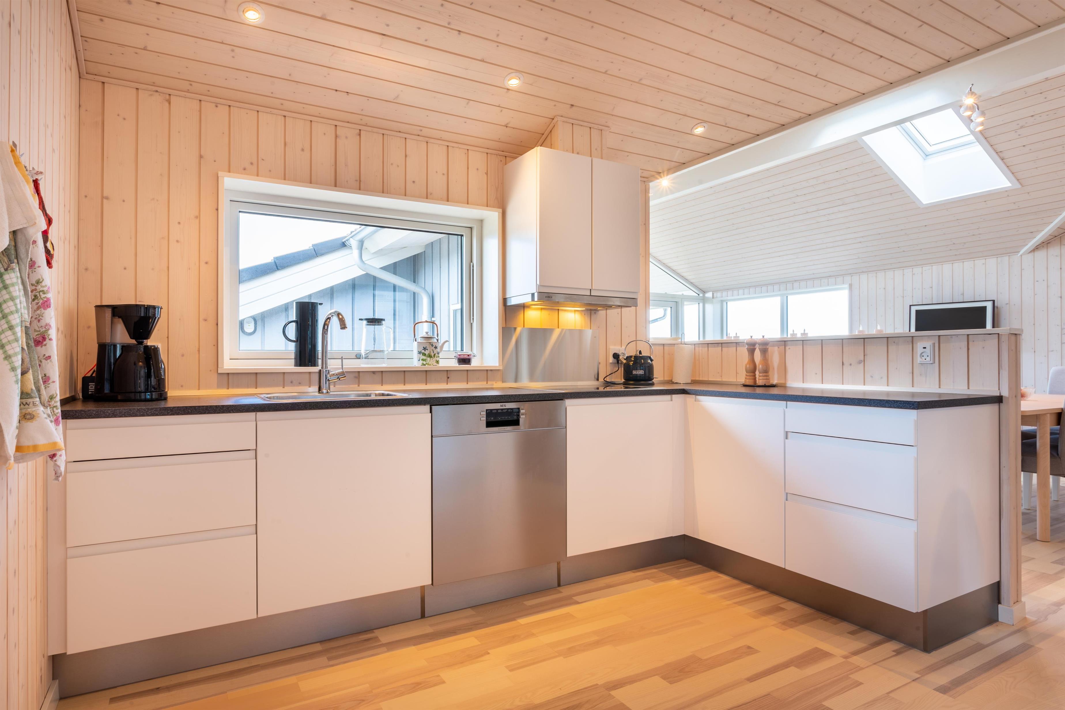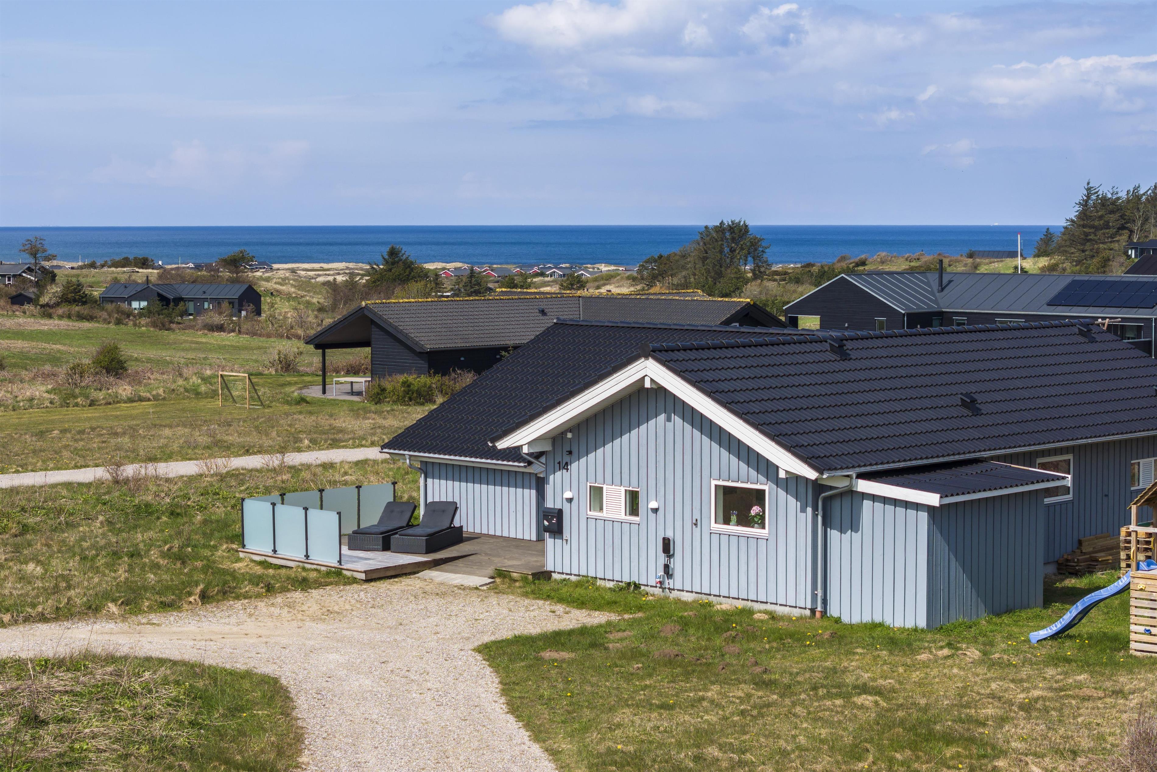 Huset er funktionelt og stilfuldt indrettet med et rummeligt køkken-alrum og stue i åben forbindelse. Store vinduespartier lader lyset strømme ind og giver jer et skønt kig til området og havet. Fra stuen er der direkte udgang til terrassen, hvor I kan nyde den friske luft og de naturskønne omgivelser. Åben blot terrassedøren, lad den friske havluft trænge helt ind og nyd roen. Sommerhuset har tre gode soveværelser og to badeværelser, hvoraf det ene er udstyret med et spabad - perfekt til afslappende stunder. Badeværelserne er moderne og praktiske, hvilket gør huset ideelt for familier eller mindre grupper. Med plads til 6 personer er der rig mulighed for at skabe dejlige minder sammen. Det energivenlige feriehus er opvarmet med en varmepumpe, og der er installeret en lader til elbiler med type 2-stik (kabel skal medbringes). Dette gør huset til et moderne og miljøvenligt valg for jeres ferie.