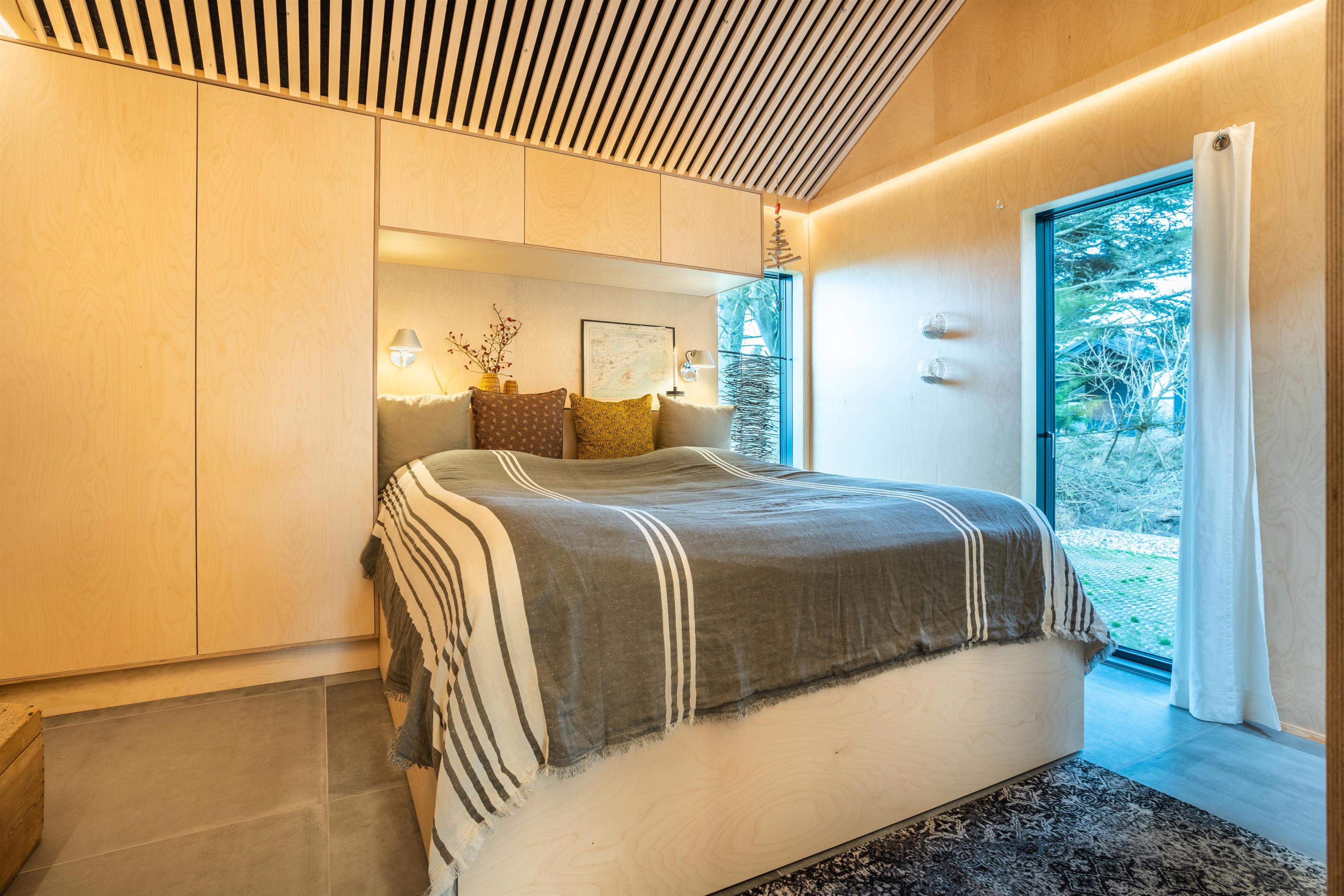 Feriehuset har tre gode soveværelser med plads til i alt 6 personer og to stilfulde badeværelser, hvoraf det ene er indrettet med et nedsunket badekar, som indbyder til afslapning med udsigt til naturen.