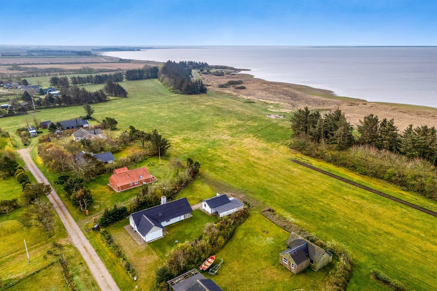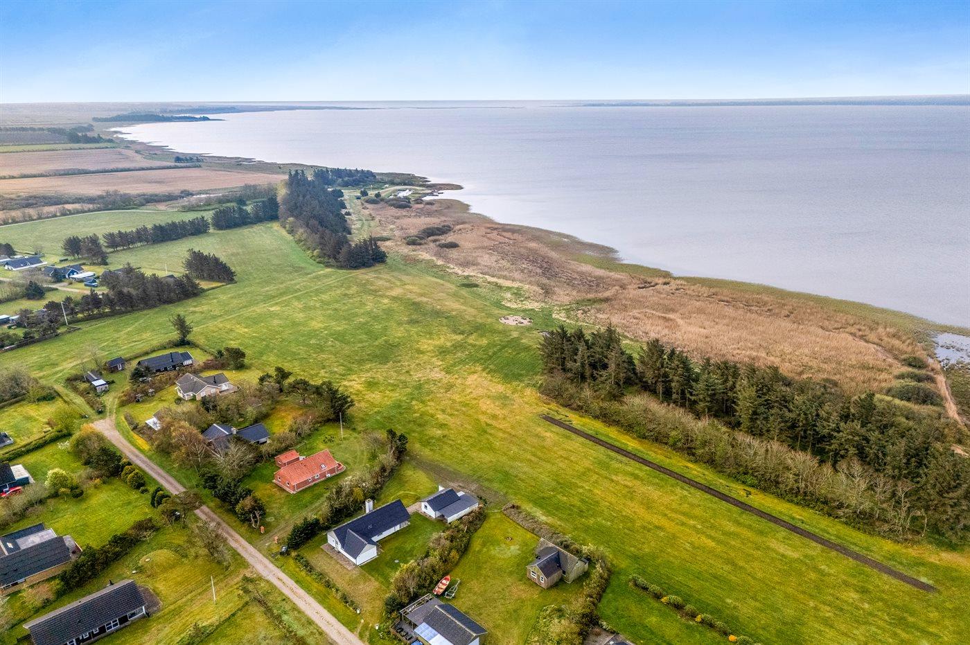 Ferieboligen er beliggende på en 1085 m² stor naturgrund. Der er 200 m til fjorden. Nærmeste forretning er beliggende i en afstand af 8000 m. Til ferieboligen hører åbent terrasseareal. Desuden er der overdækket terrasse. Bålsted. Der er parkering foran ferieboligen.