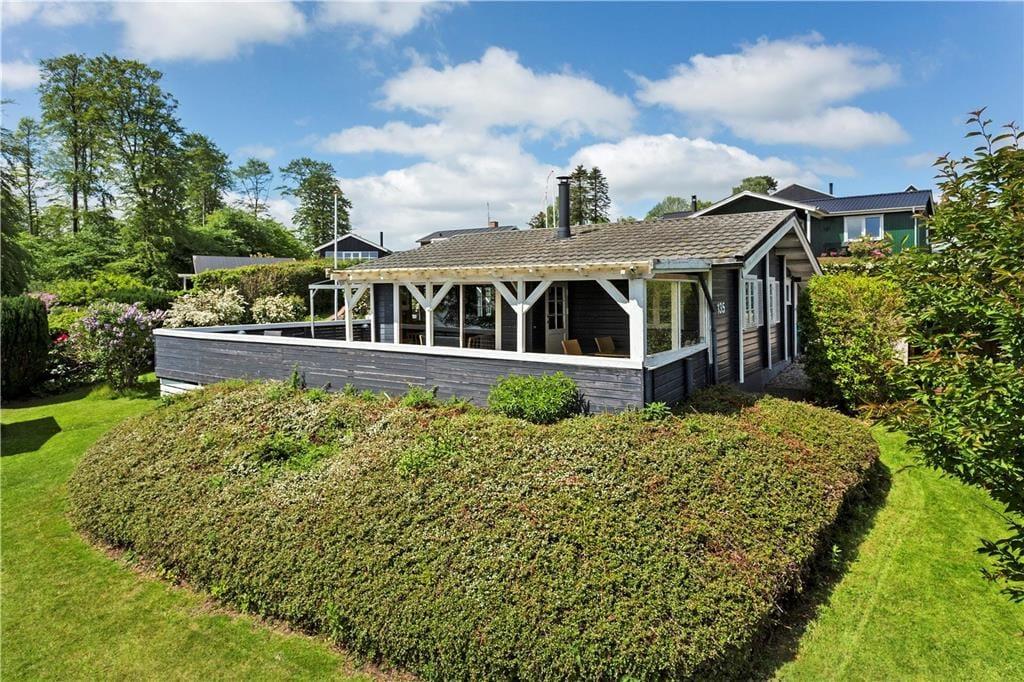 Dette sommerhus, der er egnet til seks personer, ligger som et af de højest beliggende i Skarrev og byder på en enestående panoramaudsigt over Lillebælt, der summer af sejlsportsliv. Området er bl.a. også kendt for sit gode fiskevand. Sommerhuset indeholder soveværelse med dobbeltseng, værelse med to enkeltsenge, pænt badeværelse med bruser og endelig en stor stue med fantastisk udsigt og i åben forbindelse til et godt og funktionelt køkkenmiljø. Hertil kommer et anneks med yderligere to enkeltsenge. Fra ejendommen har I udsigt til den flotte natur med f.eks. bøgeskove mod syd og vest. Huset emmer af dansk sommerhusstemning med god plads for både store og små. Der er to overdækkede terrasser. Den ene vender mod havet, og er afdækket med glas i siderne, så I kan sidde i ly for vinden og nyde udsigten i fulde drag. På den anden side af huset er der et overdækket terrasseområde, hvor I kan grille og nyde udelivet om aftenen. Der er i alt ca. 65 m2 terrasser. Til de mindste er der en sandkasse.