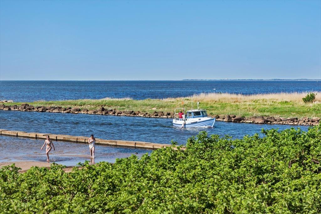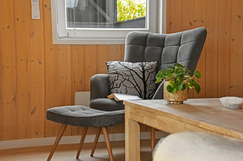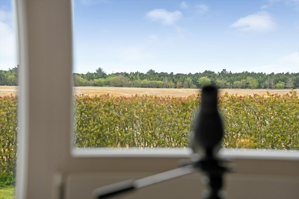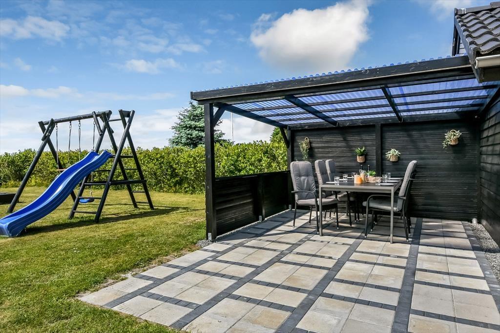 Sommerhusets dejlige have ligger ret ugeneret i bunden af den lukkede vej, og på græsplænen er der godt med plads, hvis børnene vil lege eller får held med at overtale de voksne til at spille bold eller frisbee. Gyngestativet med rutsjebane og sandkassen kan sikkert også underholde de yngste i et godt stykke tid – og imens kan du måske få et velfortjent hvil i en god havestol eller nyde den uforstyrrede markudsigt hen over hækken. Terrassen er dejligt solrig, og den er delvist afskærmet, så der er gode chancer for at finde en opholdsplads i læ for vinden.
