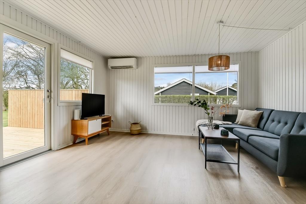 Så snart du træder ind i det nyrenoverede sommerhus, mærker du roen og den varme atmosfære brede sig. De lyse materialer og den hyggelige indretning giver en afslappet og hjemlig følelse – præcis som et sommerhus skal. I det åbne opholdsrum samles alle feriens små øjeblikke: duftene fra køkkenet, latteren fra brætspillene og stilheden, når regnen trommer let mod ruden, og du lader en god bog opsluge dig i sofaen. Her er plads til samvær og afslapning i et tempo, hvor ferieroen får lov at fylde det hele. Og når mørket falder på, er det oplagt at tænde levende lys og nyde de stille aftentimer med dem, du holder af.
