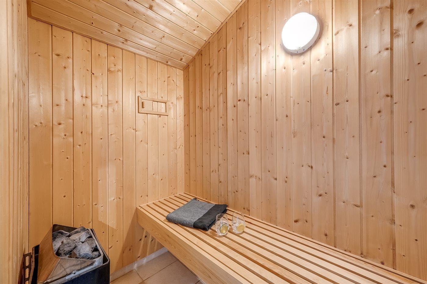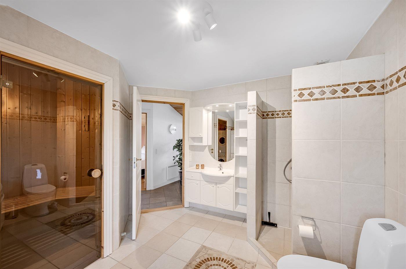 Der er 1 badeværelse med bruseniche og 2 toiletter, heraf 1 gæstetoilet. Der er gulvvarme på 1 badeværelse. I saunaen er der mulighed for afslapning.