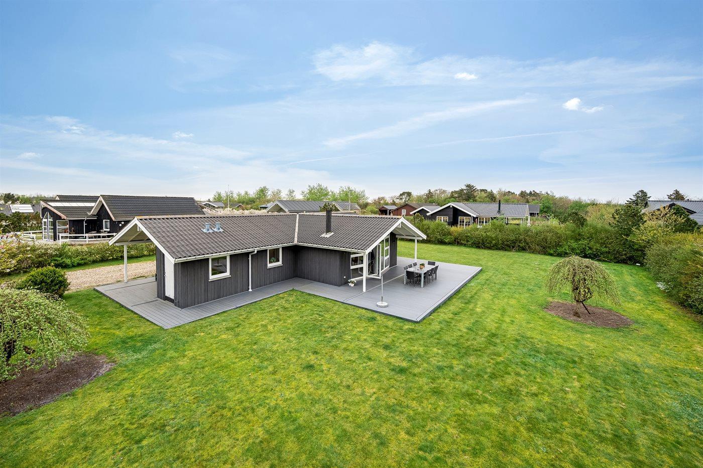 Ferieboligen er beliggende på en 1200 m² stor naturgrund. Der er 13500 m til havet. Der er 700 m til fjorden. Nærmeste forretning er beliggende i en afstand af 600 m. Til ferieboligen hører 30 m² terrasseareal. Desuden er der 8 m² overdækket terrasse. Der er redskabsrum. Der er installeret stik til opladning af elbil (ladekabel skal medbringes). Med 11 kW ladeeffekt. Parkering ved ferieboligen.