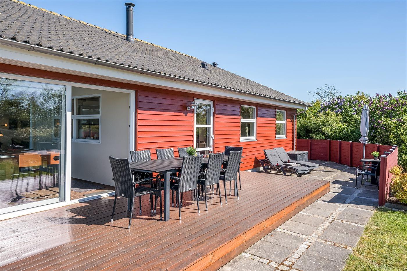 Ferieboligen er beliggende på en 1280 m² stor naturgrund. Der er 12000 m til havet. Der er 800 m til fjorden. Nærmeste forretning er beliggende i en afstand af 700 m. Til ferieboligen hører 90 m² terrasseareal. Gynge. Trampolin. Rutchebane. Der er carport til rådighed. Der er installeret stik til opladning af elbil. Med 11 kW ladeeffekt. Parkering ved ferieboligen.