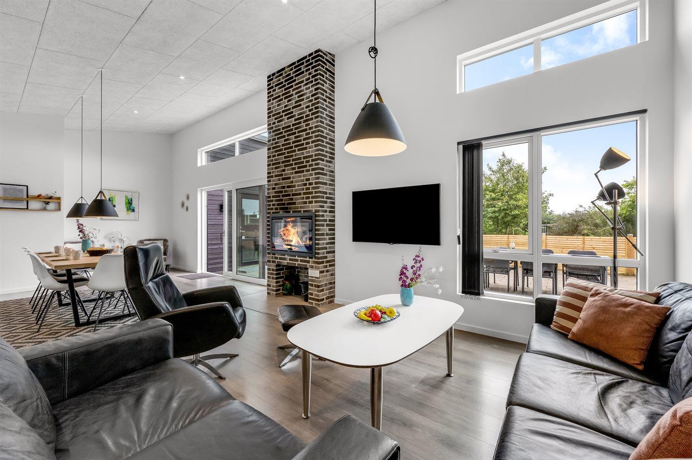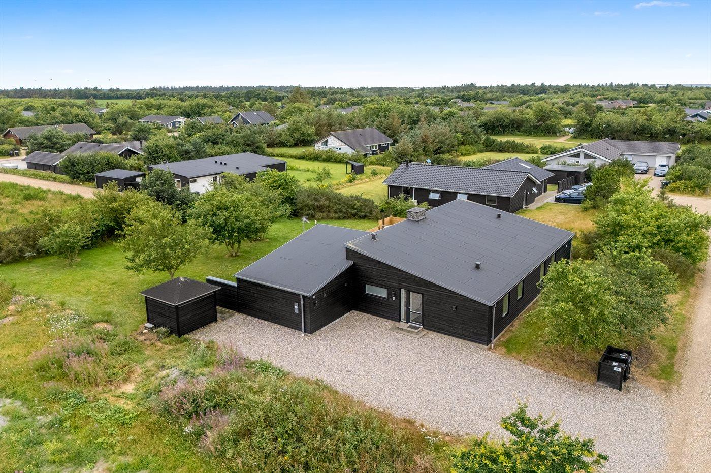Lækkert sommerhus med aktivitetsrum bygget i kvalitetsmaterialer i 2018. Feriehuset er beliggende i rolige omgivelser ved Skaven Strand.