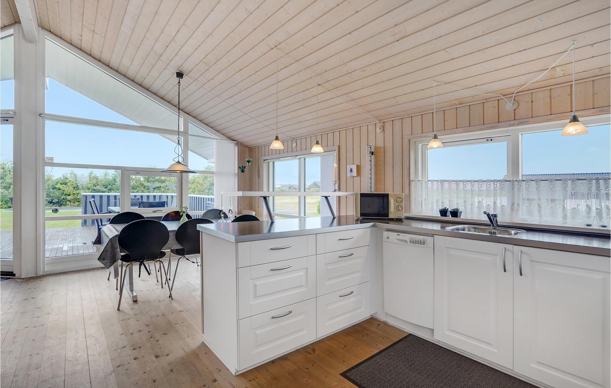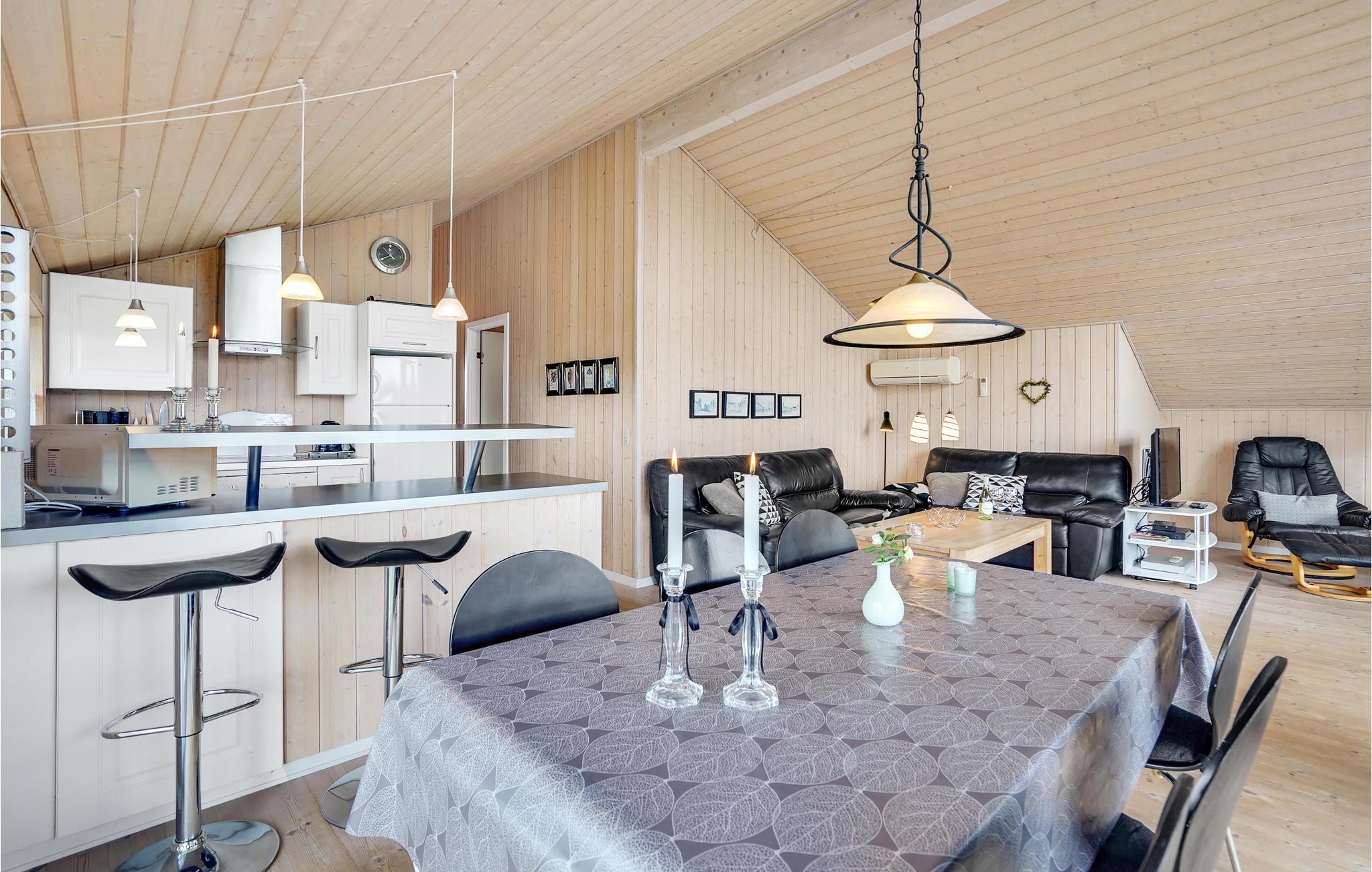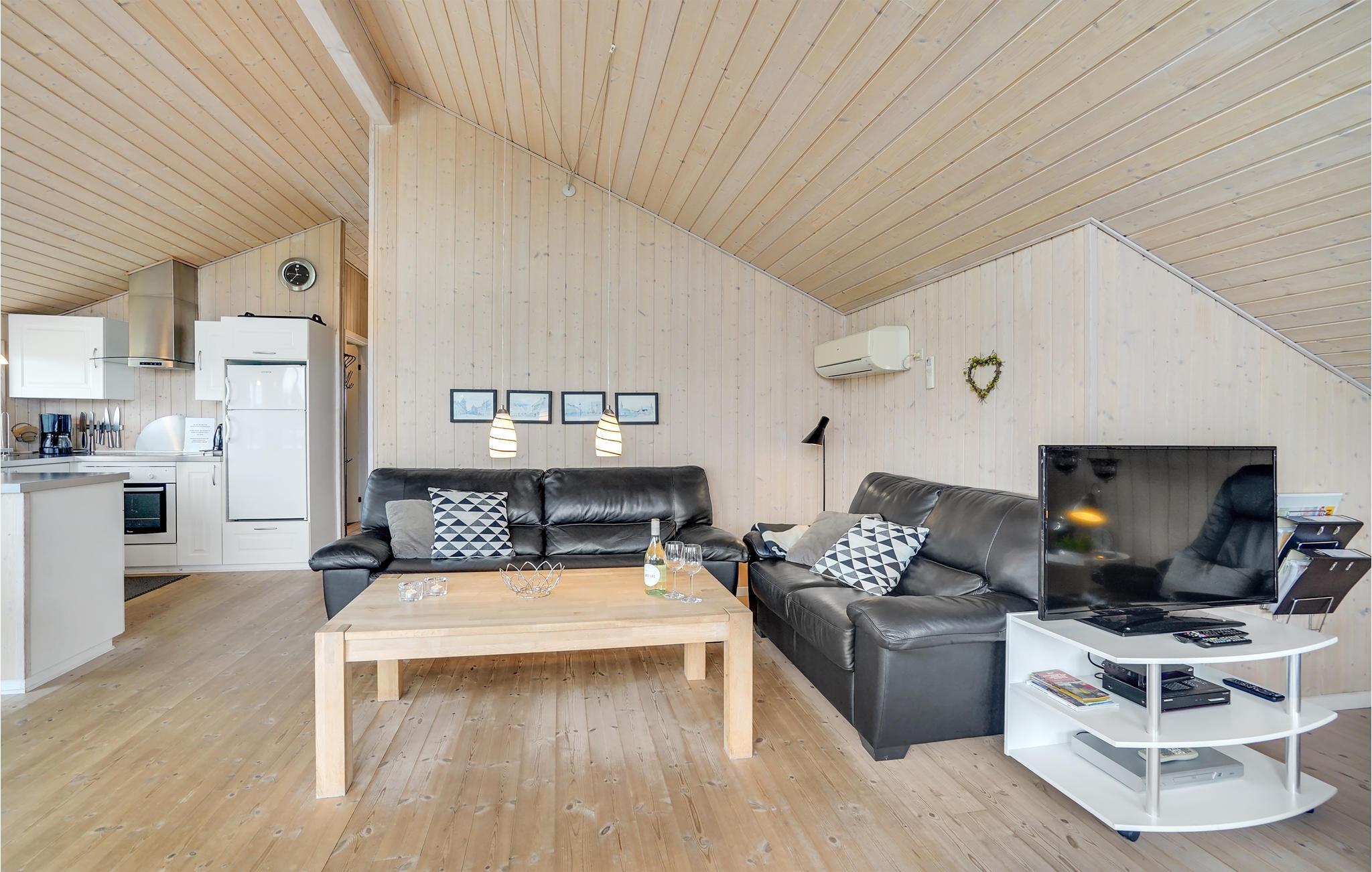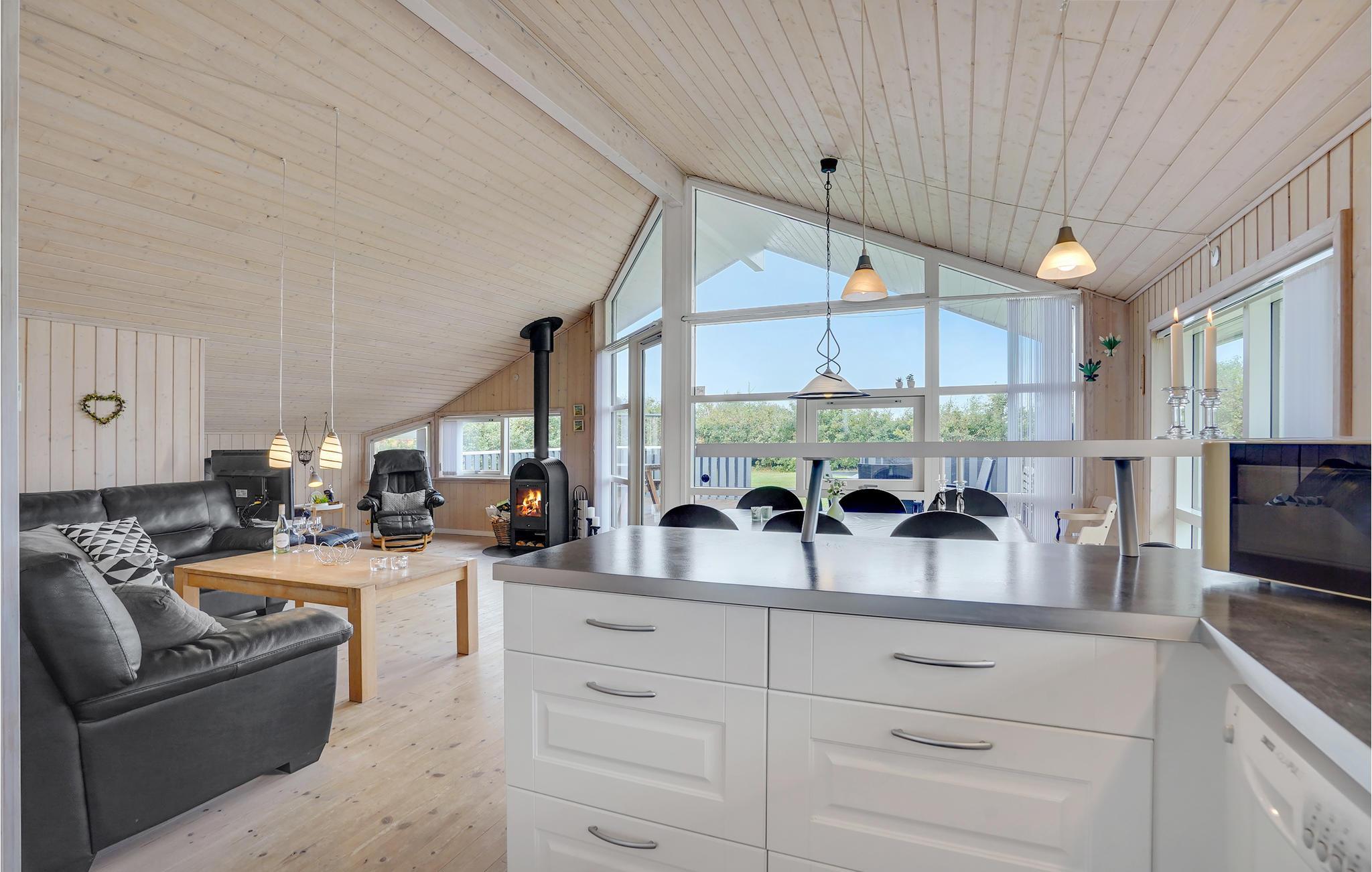 Der er lagt op til nogle fredfyldte dage i dette attraktive feriehus, som ligger i gåafstand fra stranden. Den lyse opholdsstue med store vinduer sikrer, at I fuldt ud kan nyde nærheden til naturen. Nyd ren afslapning i saunaen og spabadet, og efter en aktiv dag kan I finde jer til rette i siddegruppen ved den blidt knitrende brændeovn, hvor I kan snakke til langt ud på aftenen.