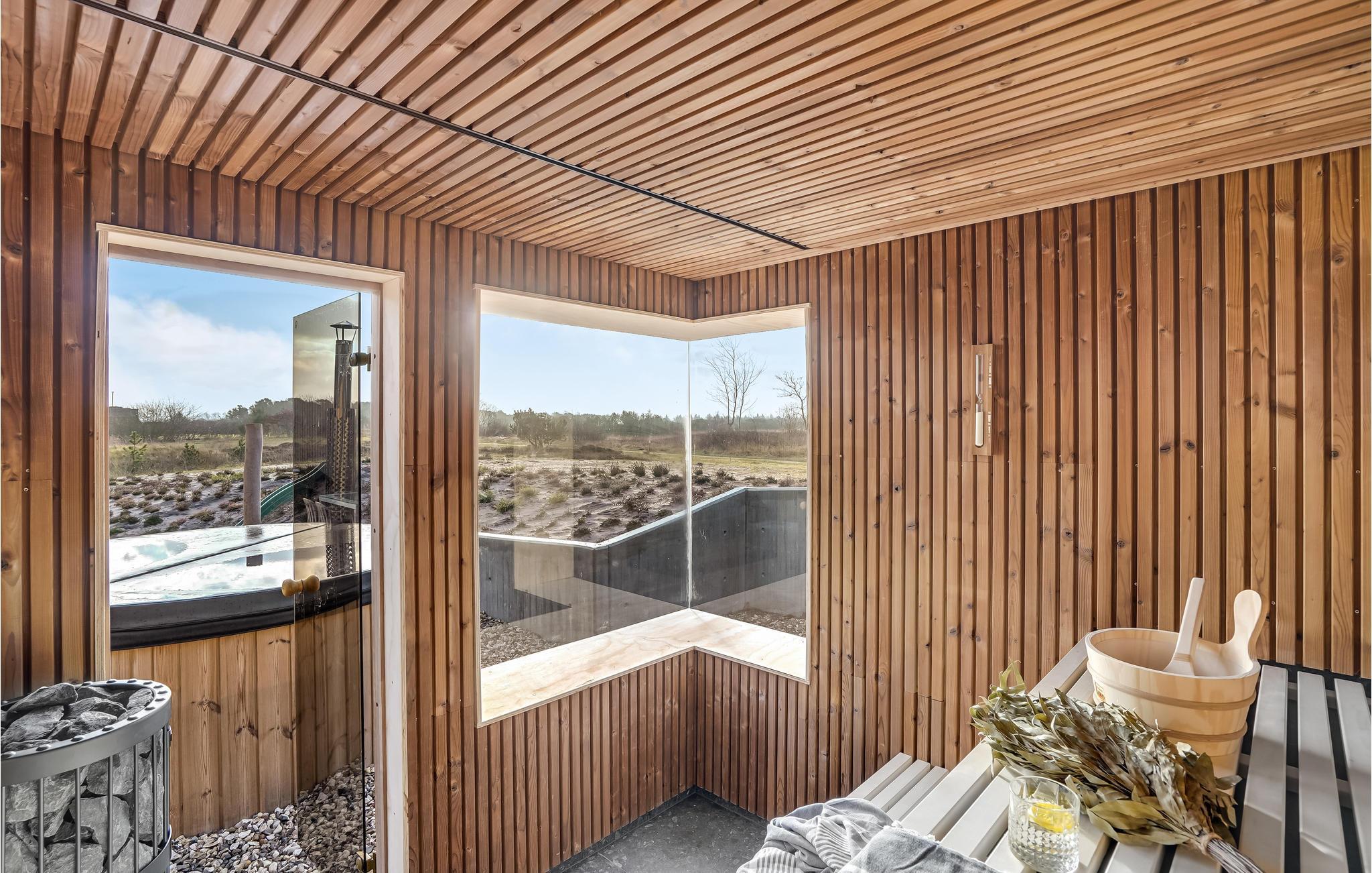 Velkommen til dette førsteklasses feriehus, som har plads til en stor familie og op til to husdyr. I kan se frem til store, lyse og smagfuldt indrettede rum og en dejlig åben terrasse med udespa, der ligesom husets sauna indbyder til rendyrket ferieafslapning.