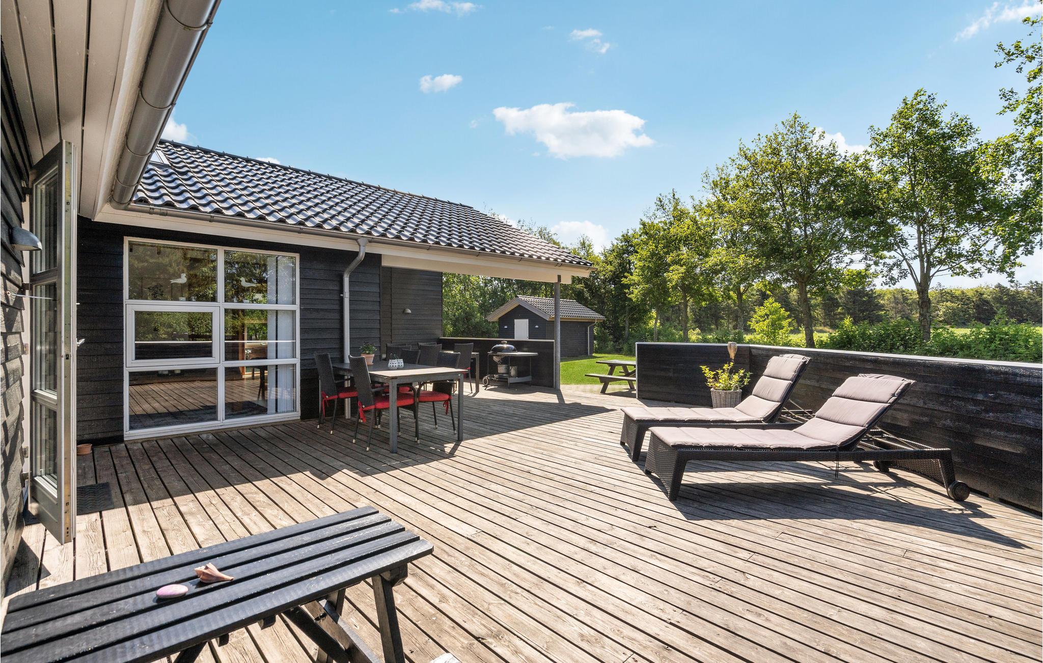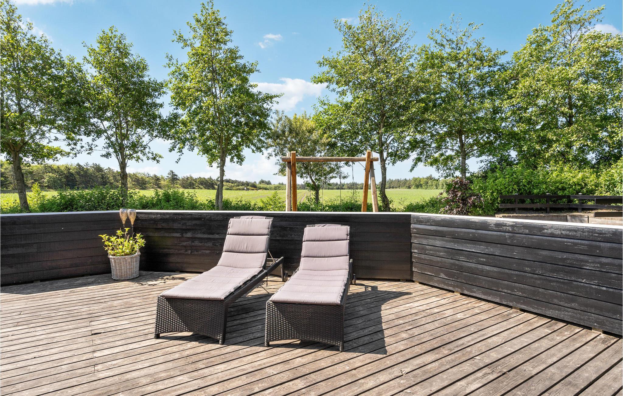 Rummeligt feriehus ved Skaven Strand med sauna, stor terrasse og udsigt over marker.