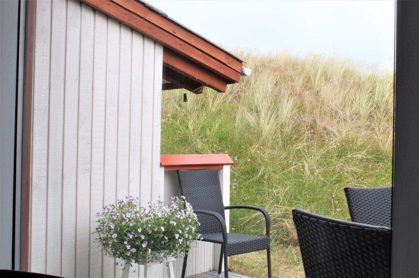 Ferieboligen er beliggende på en 3200 m² stor klitgrund. Der er 750 m til havet. Der er 250 m til fjorden. Nærmeste forretning er beliggende i en afstand af 2500 m. Til ferieboligen hører 65 m² terrasseareal. Desuden er der 10 m² overdækket terrasse. Der er to store vinduesparter med udsigt over området dels fra stuen dels fra det største af soveværelserne. Der er installeret stik til opladning af elbil. Type 2 stik. Med 11 kW ladeeffekt. Gratis parkering ved ferieboligen.