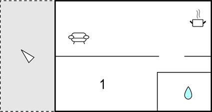 Opholdsstue/køkken - 1 Soveplads. (Sofa, madras eller lignende).