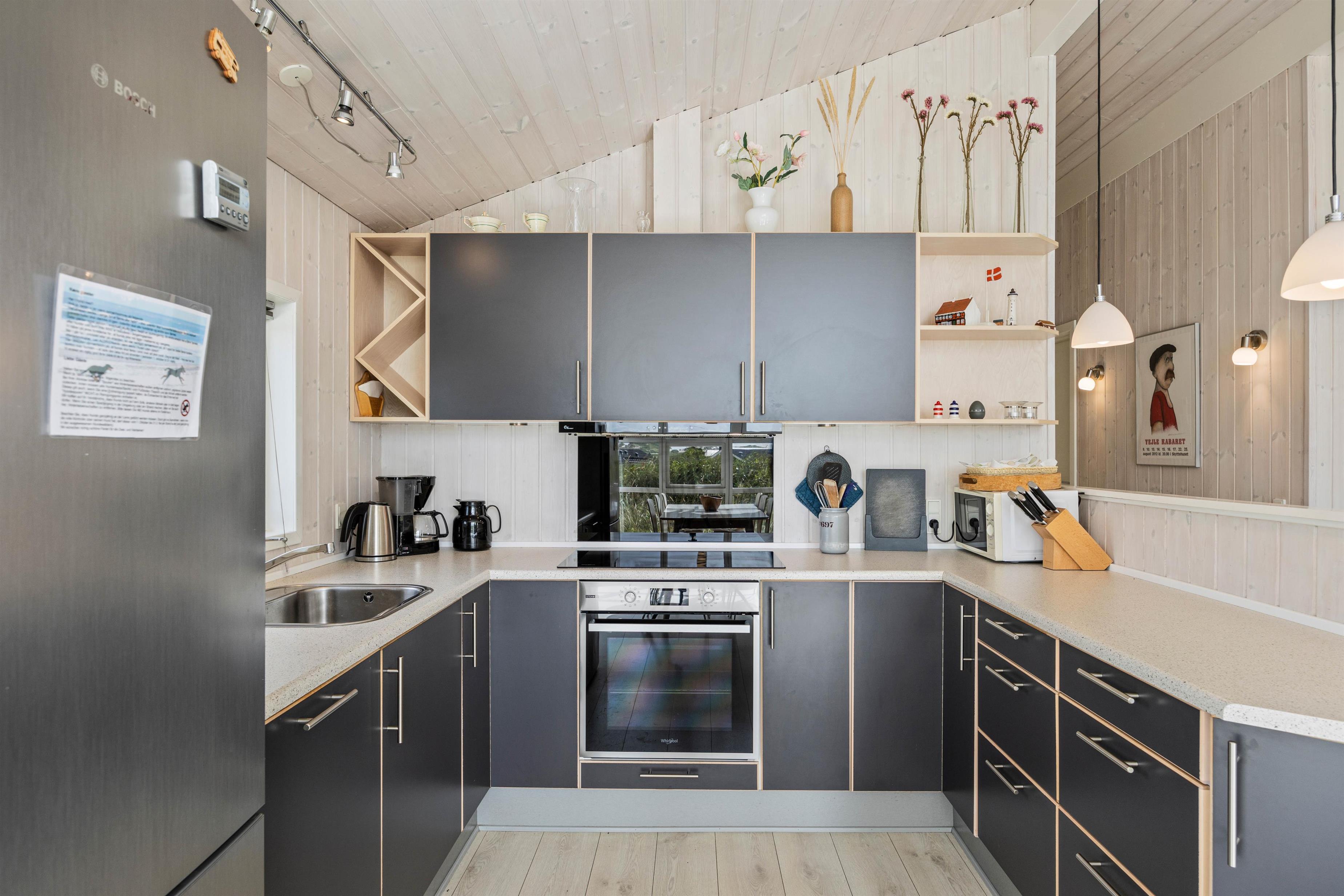 Køkkenet indeholder alt, hvad I behøver for at forkæle hinanden med lækre hjemmelavede måltider, herunder induktionskomfur, opvaskemaskine og en separat 94 l fryser. Desuden er der en tørretumbler samt en vaskemaskine, som gør det nemt at holde tøjet rent i løbet af ferien.