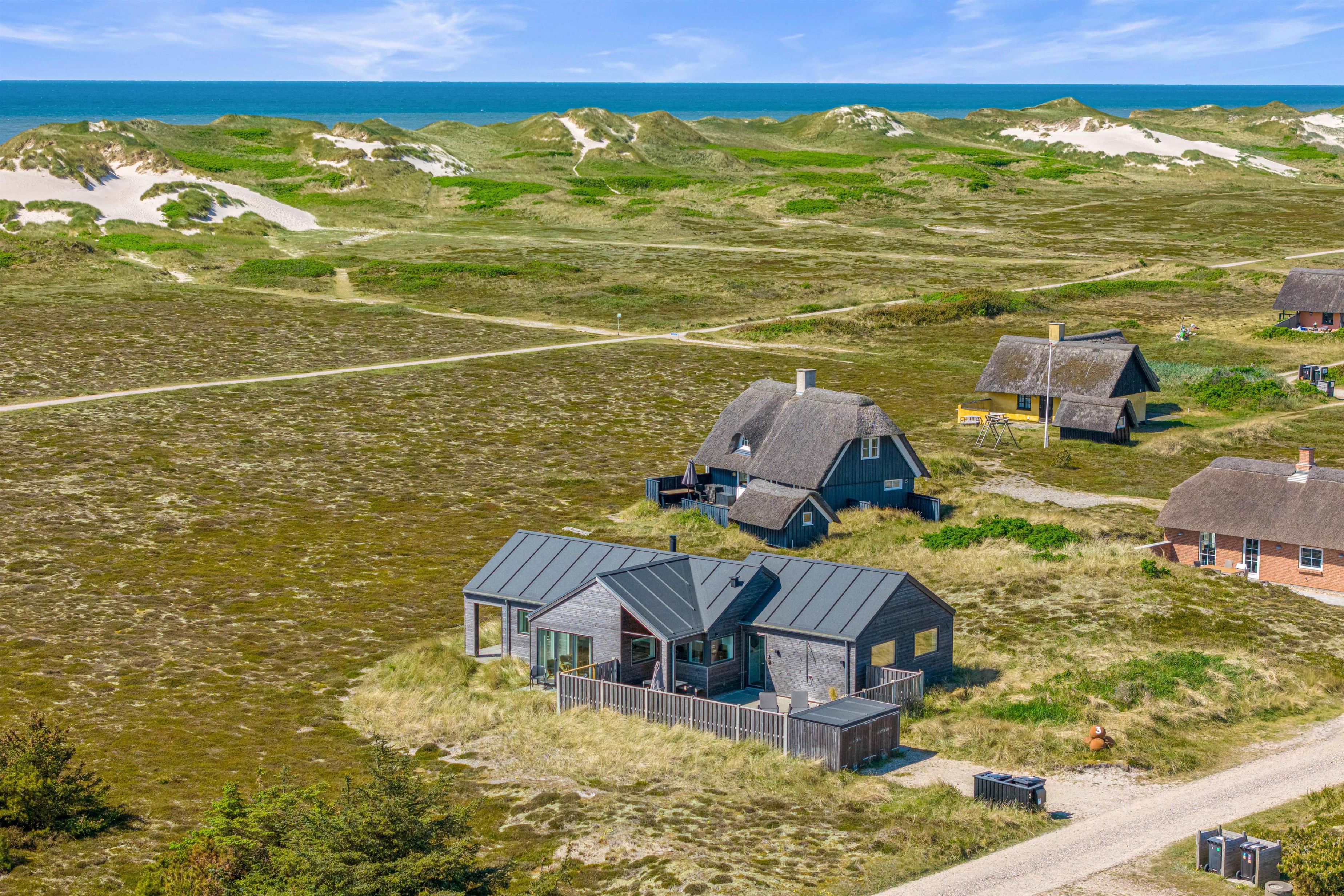 Denne perle af et feriehus på Sommervej 3 vil med sin flotte indretning og høje kvalitet opfylde enhver feriegæsts drømme. De 120 kvadratmeter byder op til 8 gæster velkomne, og blandt husets faciliteter finder I en sauna og en fantastisk, overdækket terrasse. Beliggenheden er skøn; midt i det vestjyske klitlandskab og med blot 200 meter til stranden!