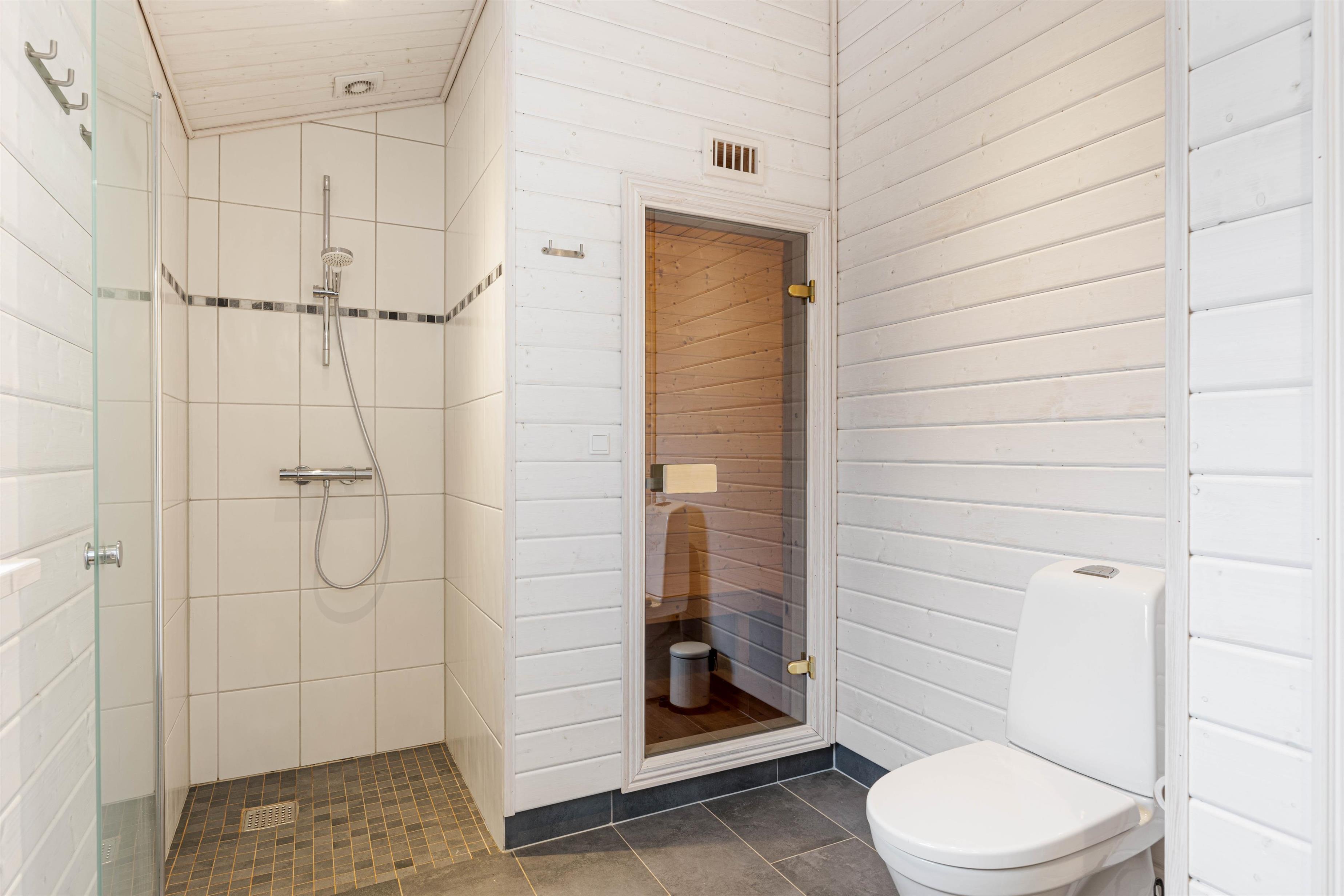 Der er 3 lyse soverum i huset med hver en dobbeltseng. Huset råder desuden over 2 badeværelser, hvoraf det ene er udstyret med en sauna, hvor man virkelig kan blive gennemvarm efter en lang efterårsdag i naturen. De 2 badeværelser gør også huset særdeles velegnet til eksempelvis 2 mindre familier.