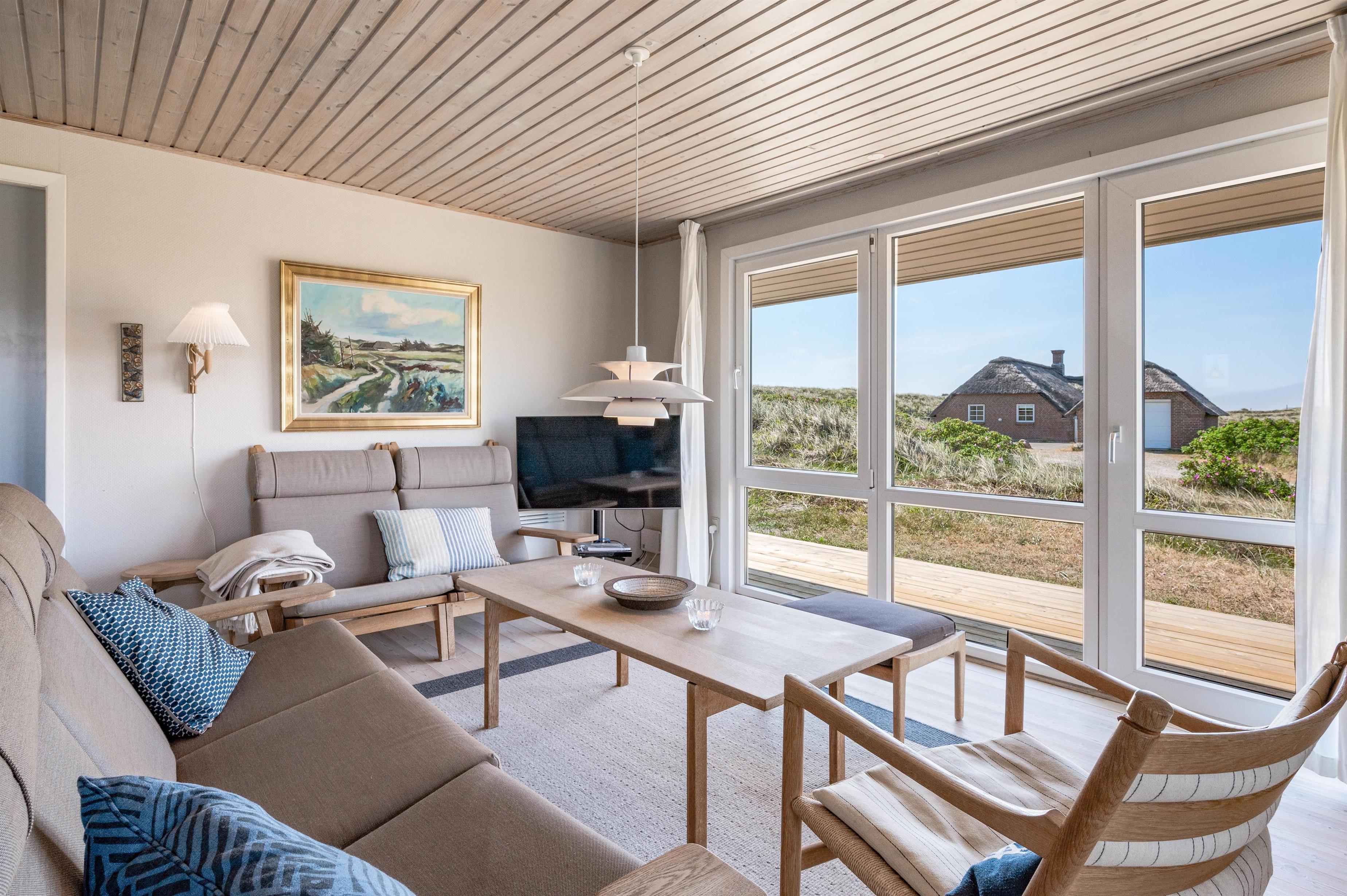 Dette sommerhus er beliggende med en vidunderlig udsigt over det fredede klit- og hedelandskab, som er specielt smukt, når lyngen blomstrer. De store vinduespartier i stuen bringer naturen og lyset helt ind i sommerhuset.