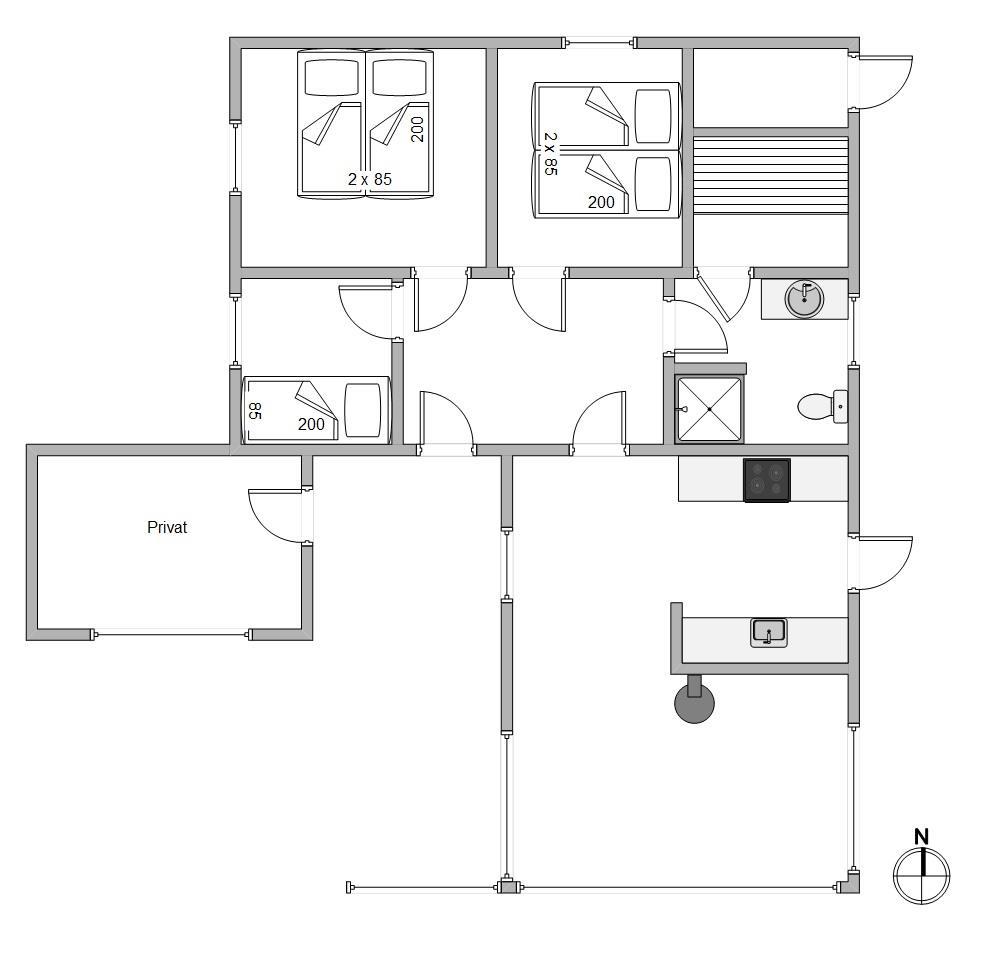 Sommerhuset er velholdt og hjemligt indrettet. Køkkenet ligger i delvis åben forbindelse med stue og spisepladsen. I forbindelse med feriehusets badeværelse finder du en dejlig sauna, som er ideel at bruge, når du og familien har været ude i den friske luft og bare trænger til at slappe af og få varmen tilbage kroppen. Sommerhuset er indrettet med 3 værelser, hvoraf de to er med dobbeltsenge og det sidste med en enkelt seng.