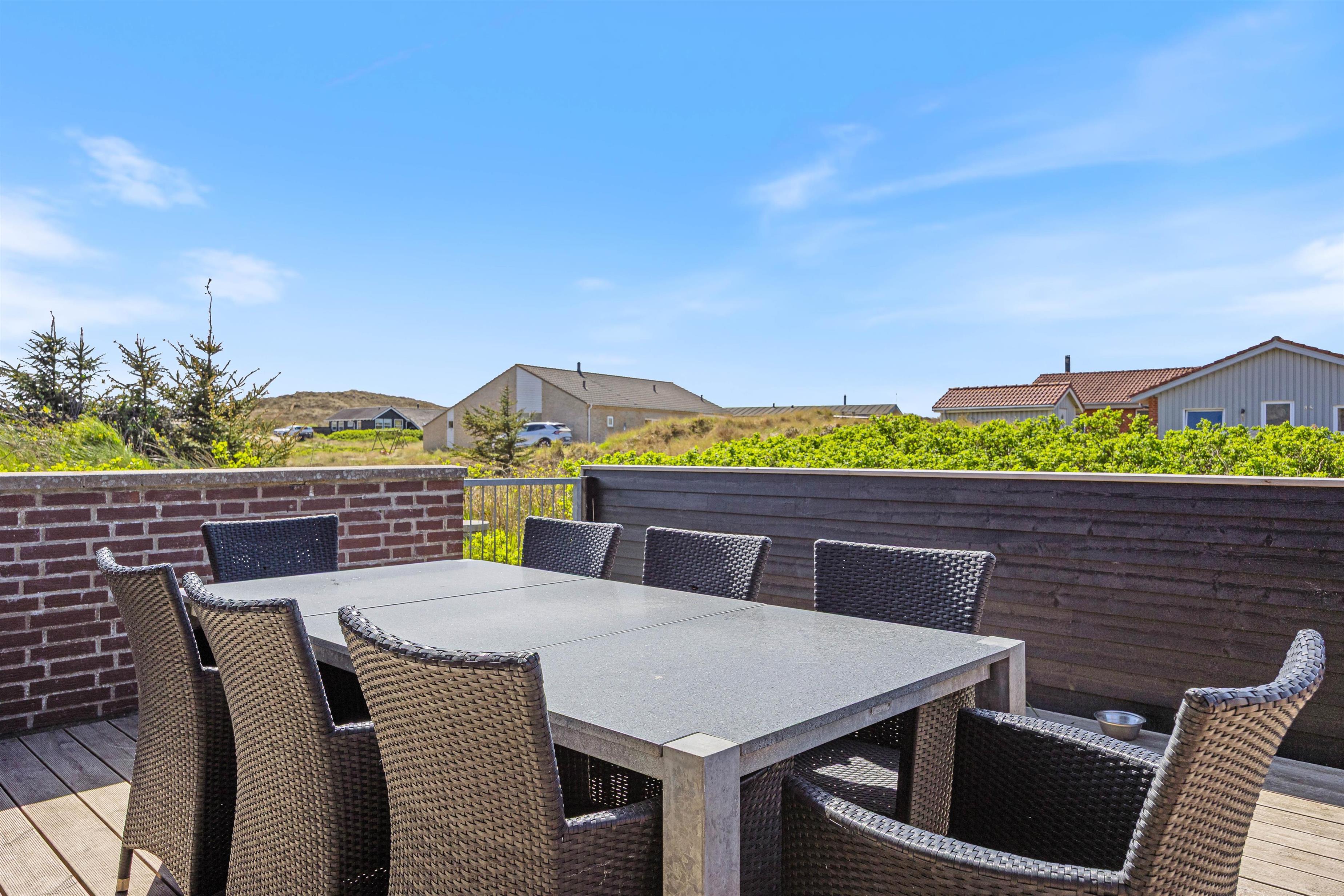 Den lukkede terrasse er som skabt til en afslappet eftermiddag med en god bog og et køligt glas vin. Med 5 kilometer til nærmeste indkøbsmuligheder, er det let at arrangere en impulsiv grillaften. Tænd op i grillen og nyd et lækkert måltid sammen, imens skyggerne bliver lange. Lad børnene hoppe på trampolin, sæt hunden i snor og gå en fælles tur til stranden for at opleve solnedgangen i Vesterhavet.
