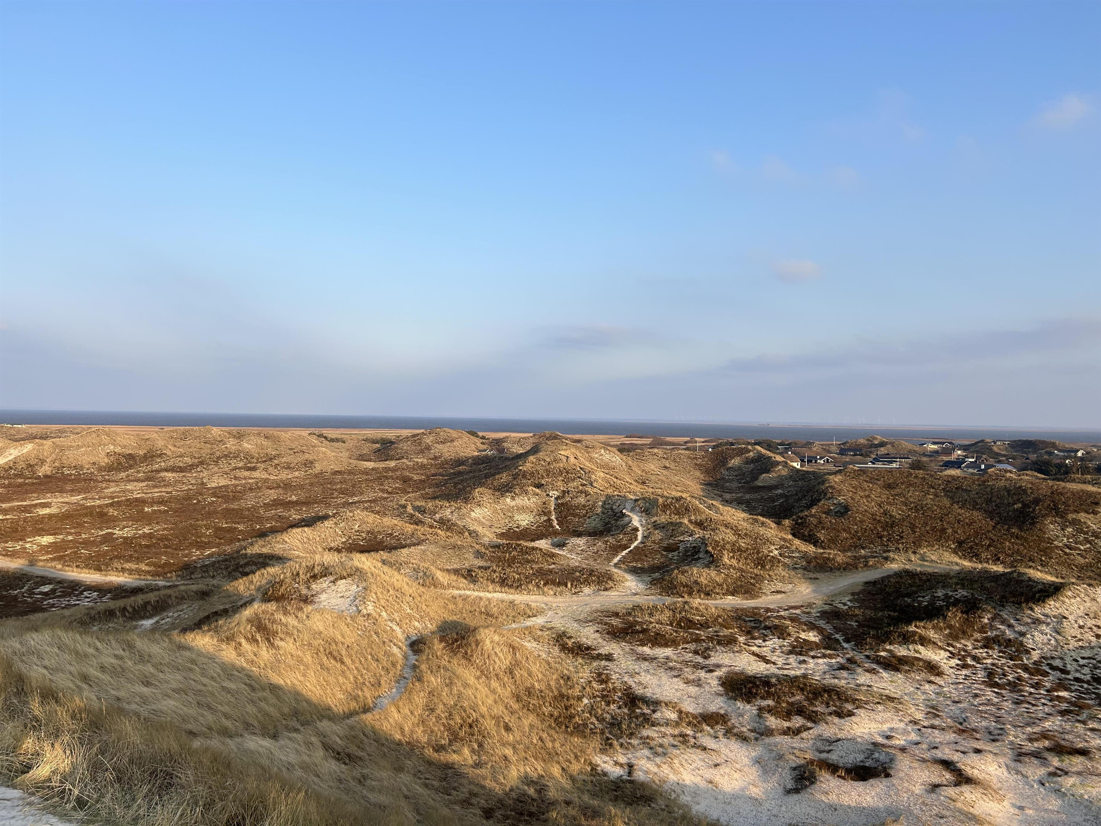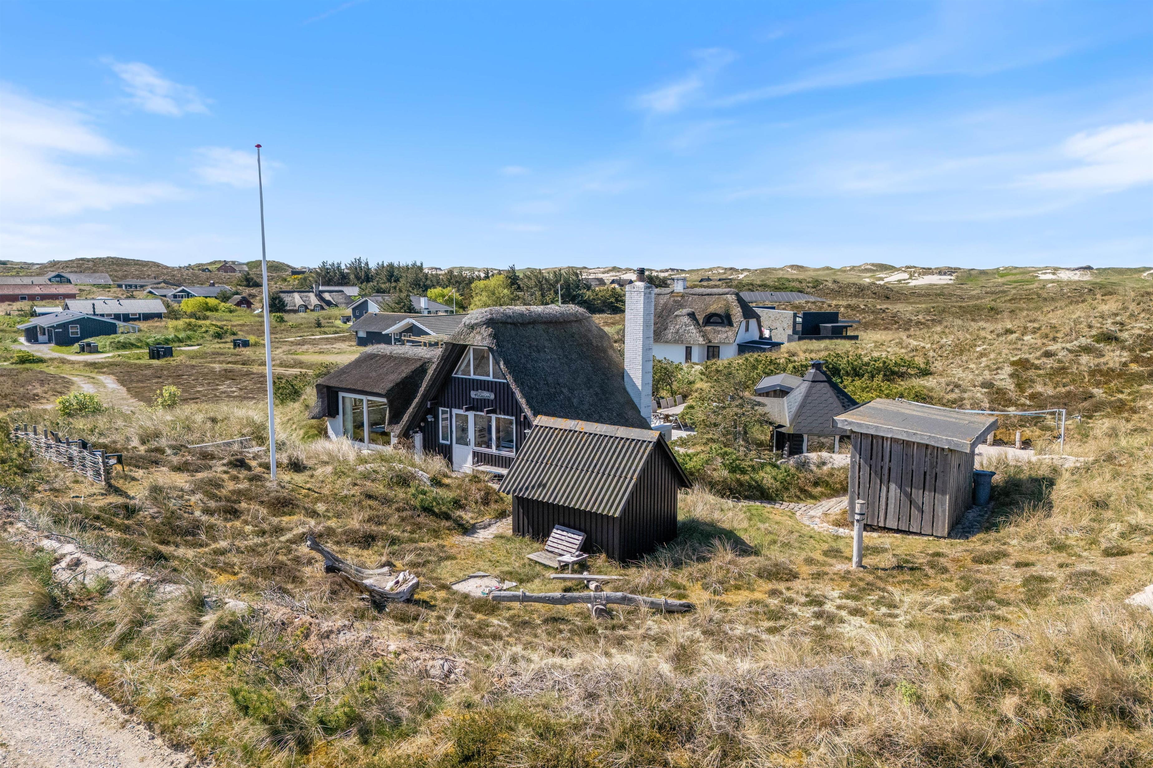 Sommerhuset har en rigtig dejlig beliggenhed på en stor klitgrund i udkanten af naturskønne Skodbjerge. Ferieområdet ligger på landtangen Holmsland Klit mellem Vesterhavet og Ringkøbing Fjord, så I både har vand mod øst og vest.