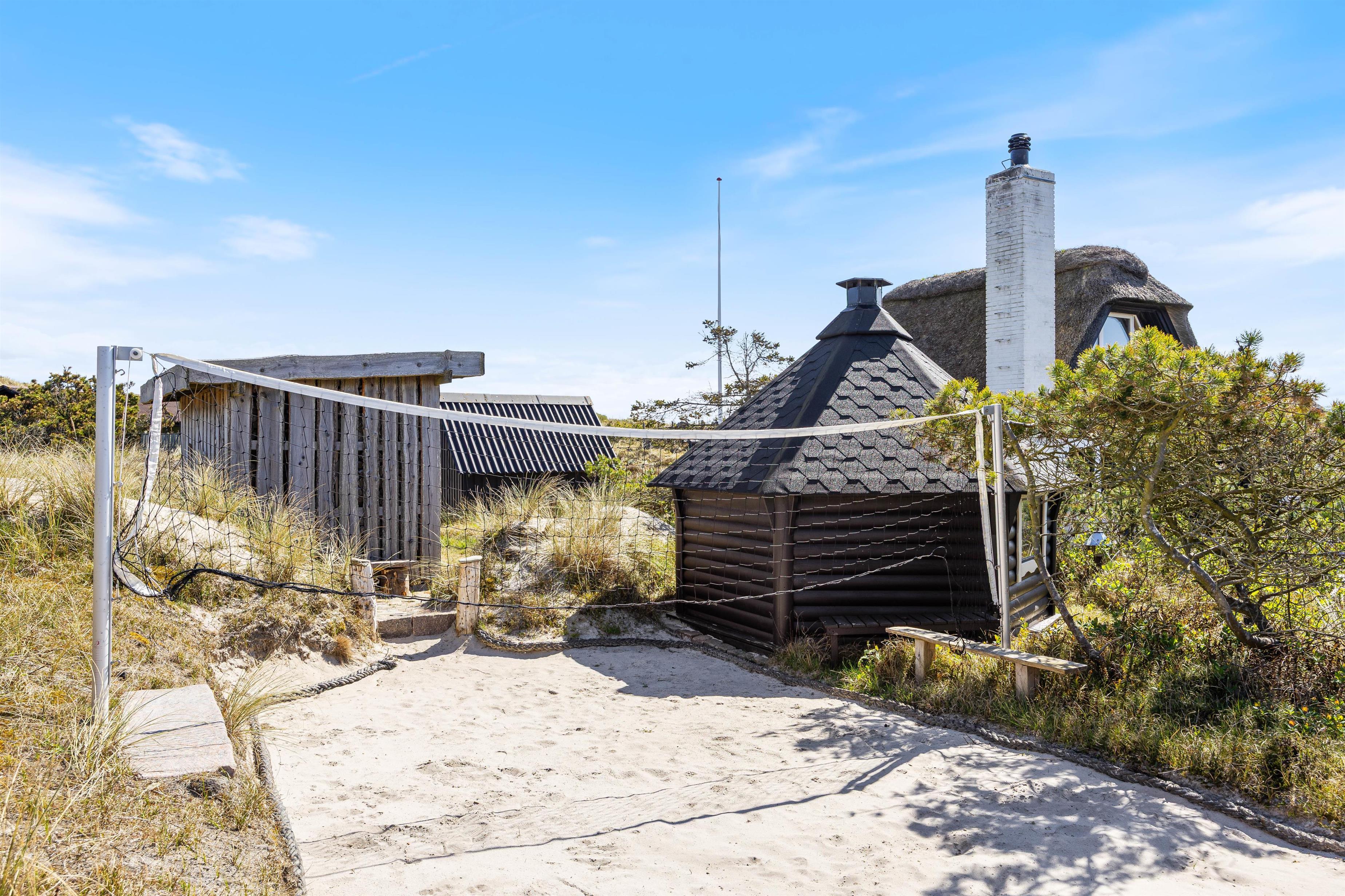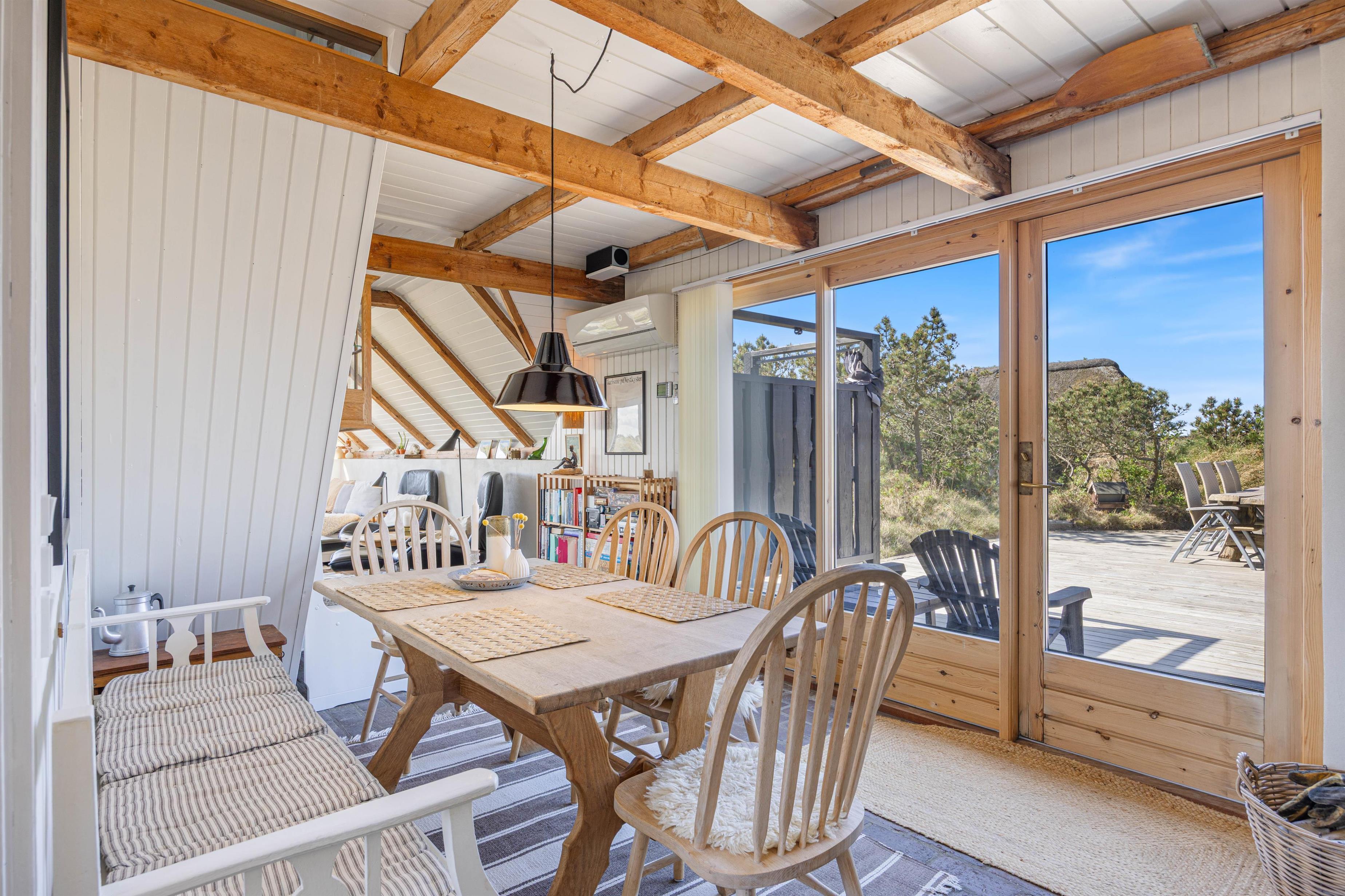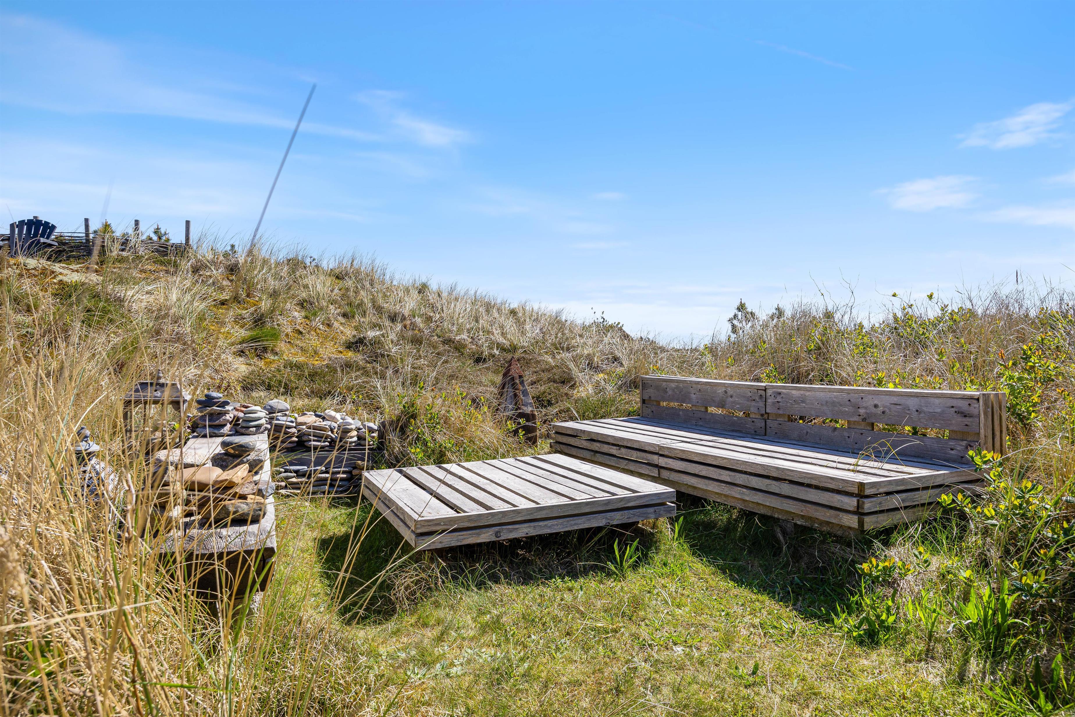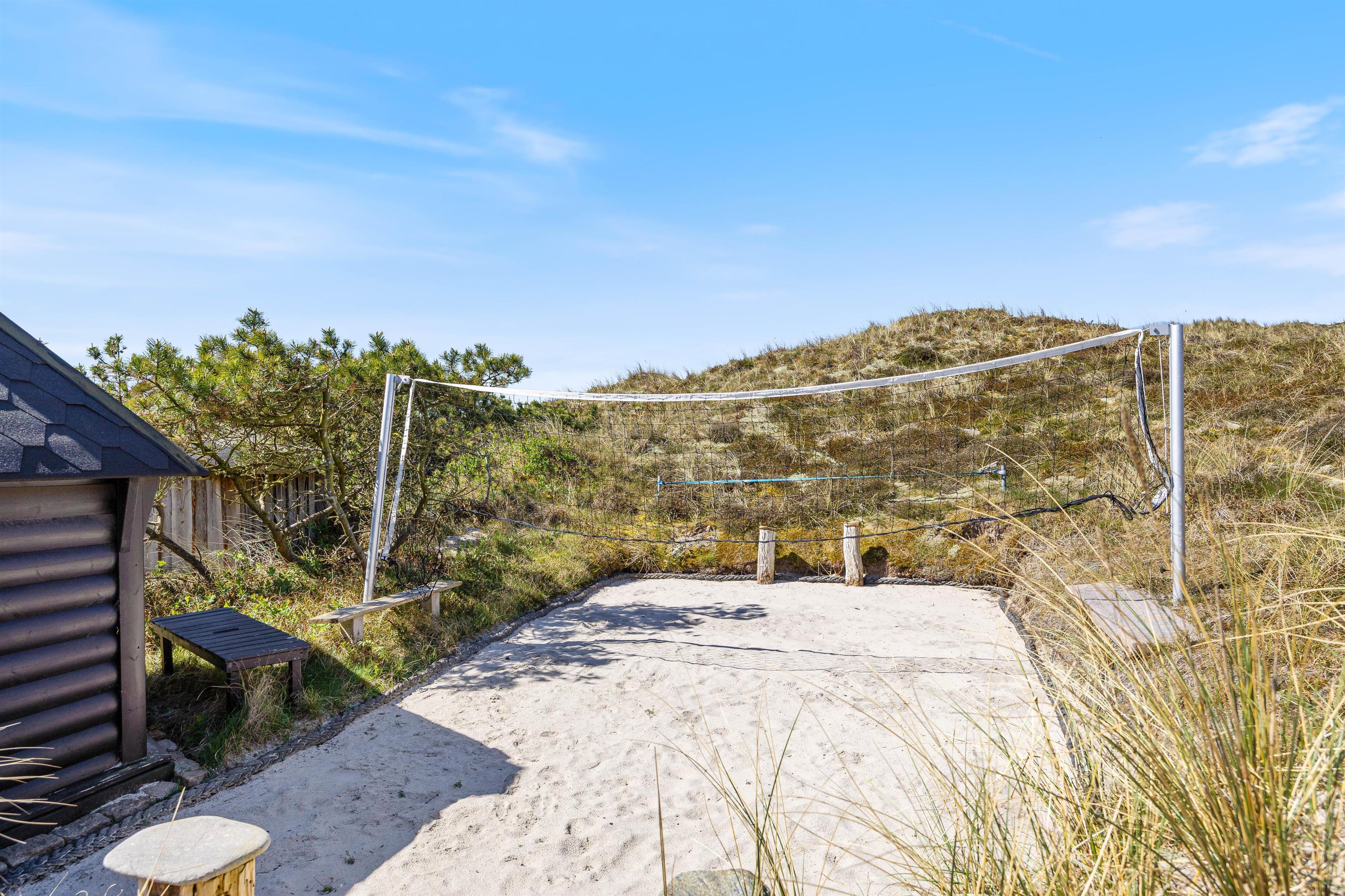 På en stor klitgrund i Skodbjerge ligger dette hyggelige sommerhus med plads til 4 feriegæster. Sommerhuset indbyder til mange hyggelige stunder både inden- og udendørs. I sommerhusets opholdsrum er der brændeovn, og udendørs finder I blandt andet udebruser, shelter, bålhytte og et lille skur med fitnessudstyr. På en varm sommerdag kan I gå med fødderne i vandkanten på stranden, som ligger 600 meter herfra.