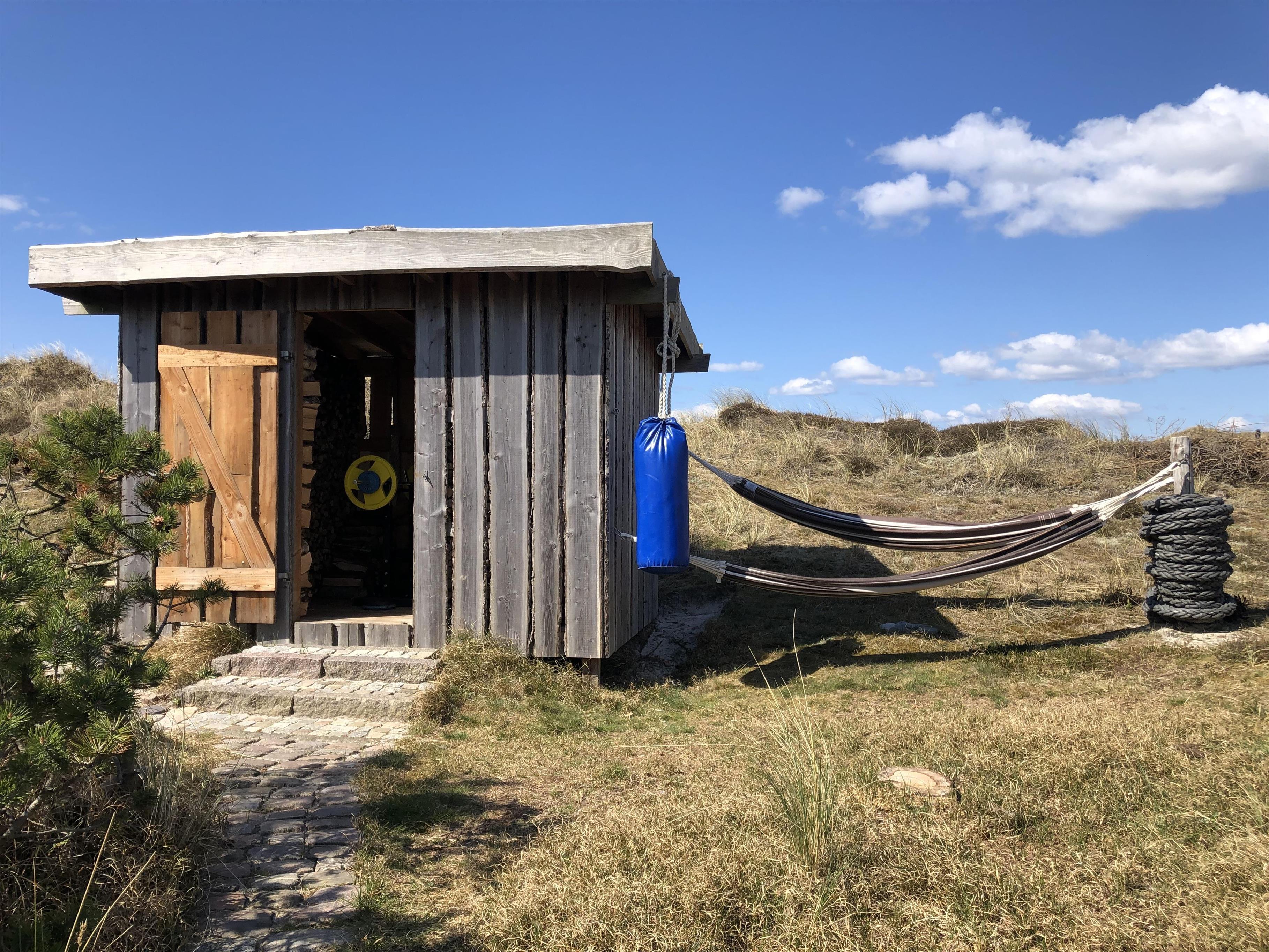 Et af feriehusets absolutte highlights er den fine bålhytte, hvor I, selv på regnvejrsdage, kan opholde jer og nyde de dejlige udefaciliteter. Her er desuden en shelter, som I kan benytte jer af til en god nats søvn i den friske havluft. Udendørs finder I også et lille skur med forskelligt fitnessudstyr – perfekt til jer, der gerne vil holde formen ved lige, selv når I er på ferie.