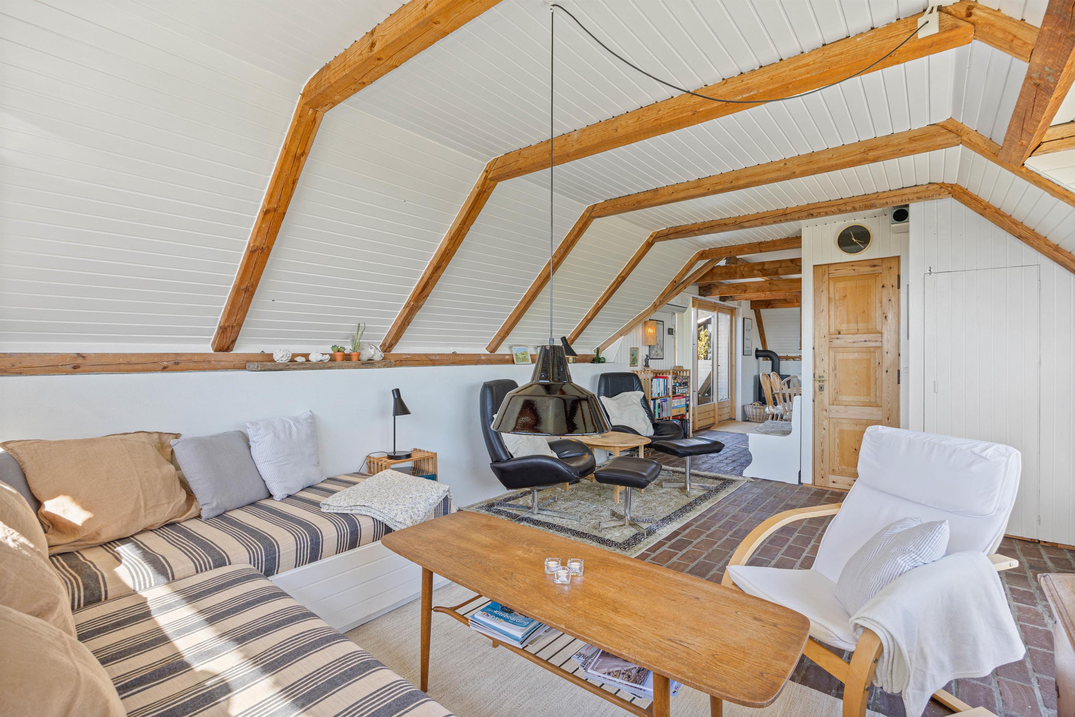 Over den smalle og stejle trappe når I til overetagen, hvor sovepladserne med skøn udsigt til det omkringliggende hede- og klitlandskab befinder sig. På hvert værelse finder I 2 enkeltsenge, hvor I kan lade batterierne op til endnu en oplevelsesrig feriedag.
