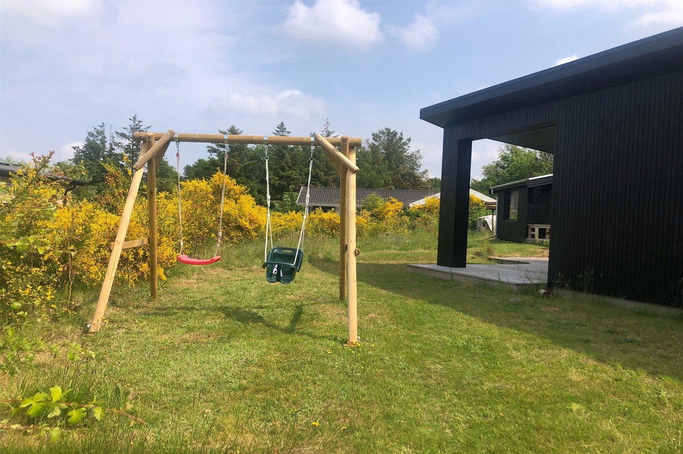 Ferieboligen er beliggende på en 1200 m² stor naturgrund. Der er 350 m til havet. Der er en badebro i nærheden. Nærmeste forretning er beliggende i en afstand af 3800 m. Der er en golfbane i en afstand af 10000 m. Til ferieboligen hører åbent terrasseareal. Desuden er der overdækket terrasse. Gynge. Sandkasse. Trampolin. Der ligger en legeplads i en afstand af 400 m. Bålsted. Udendørs sauna. Grill til rådighed. Parkering ved ferieboligen.