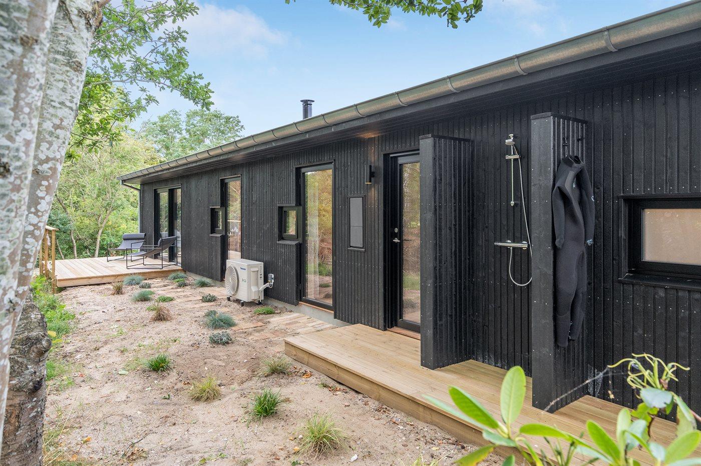 Nyopført sommerhus nær strand med spa, sauna og havudsigt i naturskønne omgivelser.