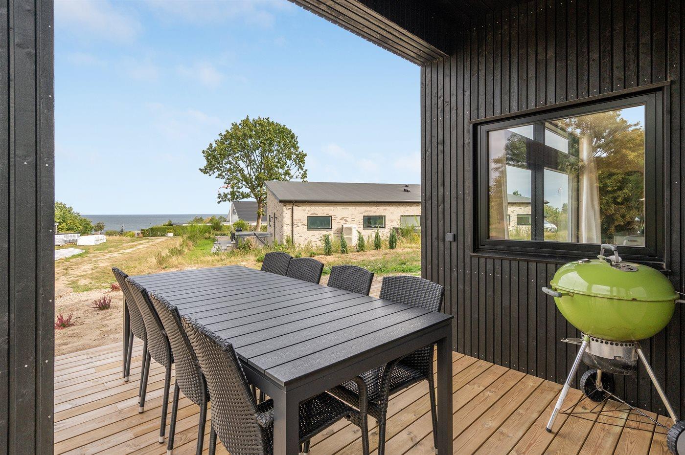 Fra såvel den dejlige terrasse, der også er delvist overdækket, som inde fra huset er der en rigtig fin udsigt over vandet. Sommerhuset er godt indrettet og der findes bl.a. en indendørs spa samt en udendørs sauna, hvorfra stilheden kan nydes.