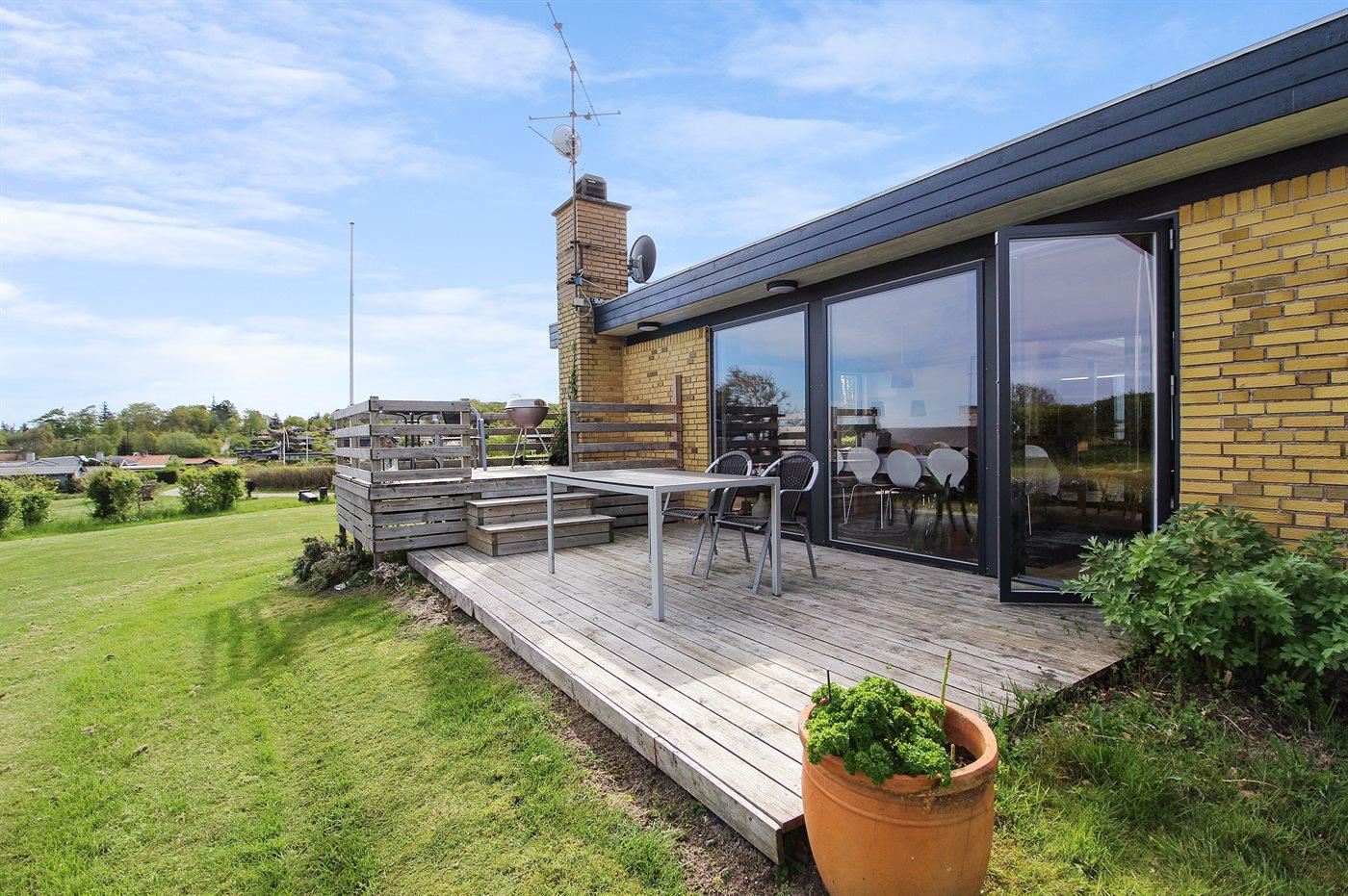 Ferieboligen er beliggende på en 1200 m² stor havegrund. Der er 100 m til havet. Nærmeste forretning er beliggende i en afstand af 3000 m. Til ferieboligen hører 68 m² terrasseareal. Desuden er der 20 m² overdækket terrasse. Udgang til solgård. Der er redskabsrum. Udendørs vask. Gynge. Sandkasse. Grill til rådighed. Der er carport til rådighed. Parkering ved ferieboligen.