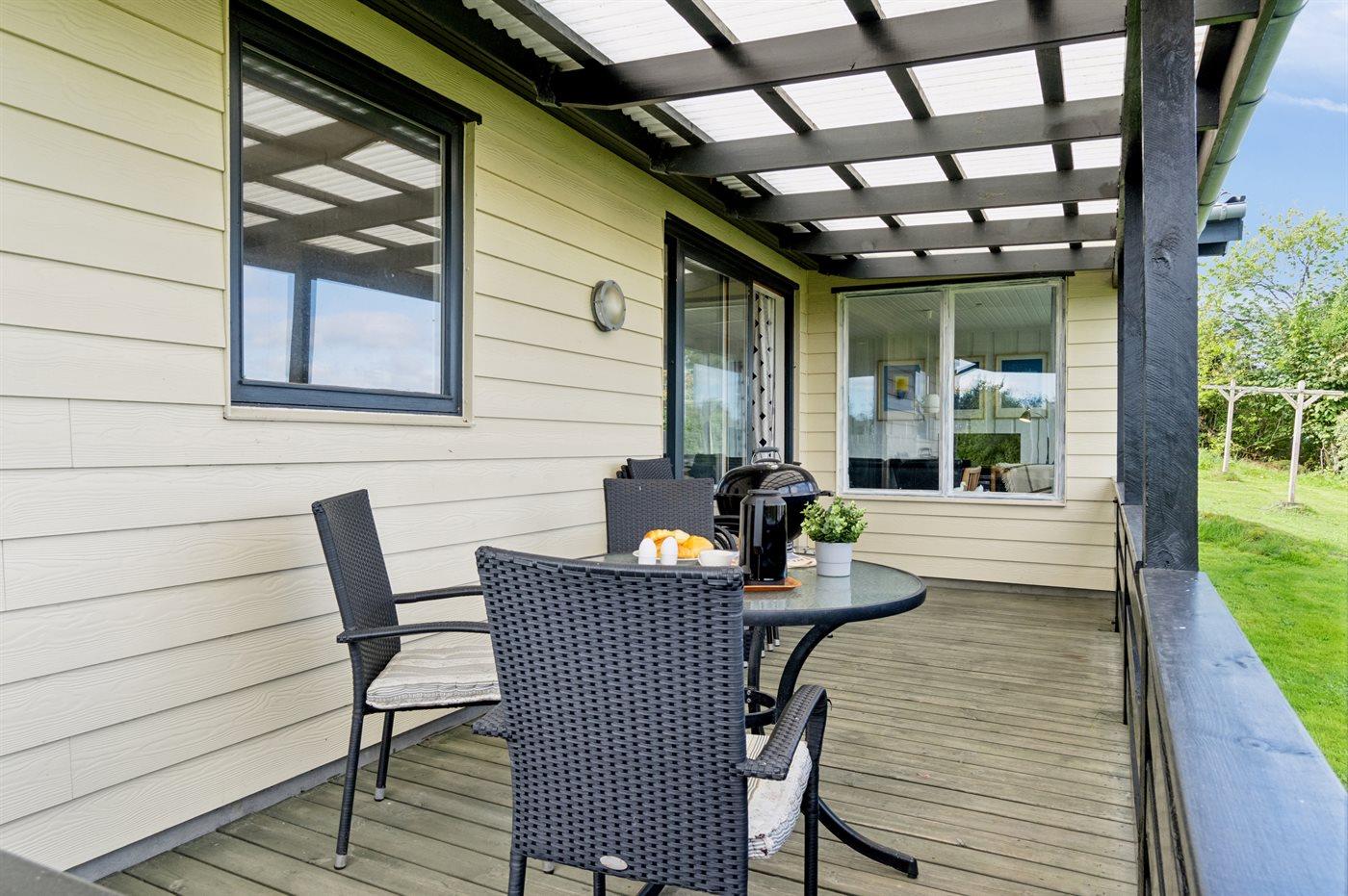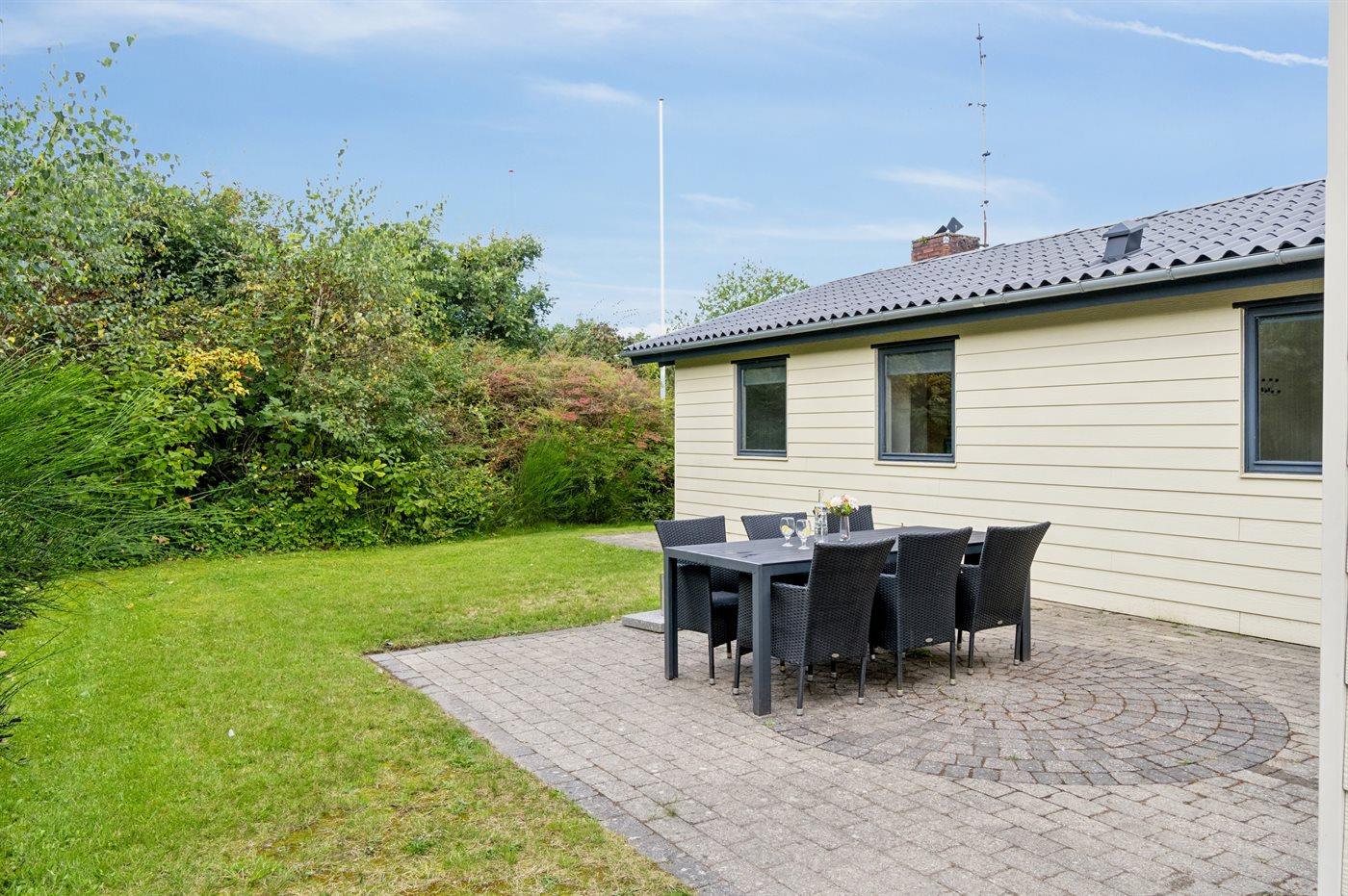Der findes skønne terrassearealer på begge sider af huset, som inviterer til mange timer i det fri - her er der altid mulighed for at finde en lækrog og nyde de dejlige omgivelser. En del af terrassen er tilmed overdækket, så der i høj grad er mulighed for at forlænge de fine sommeraftener.