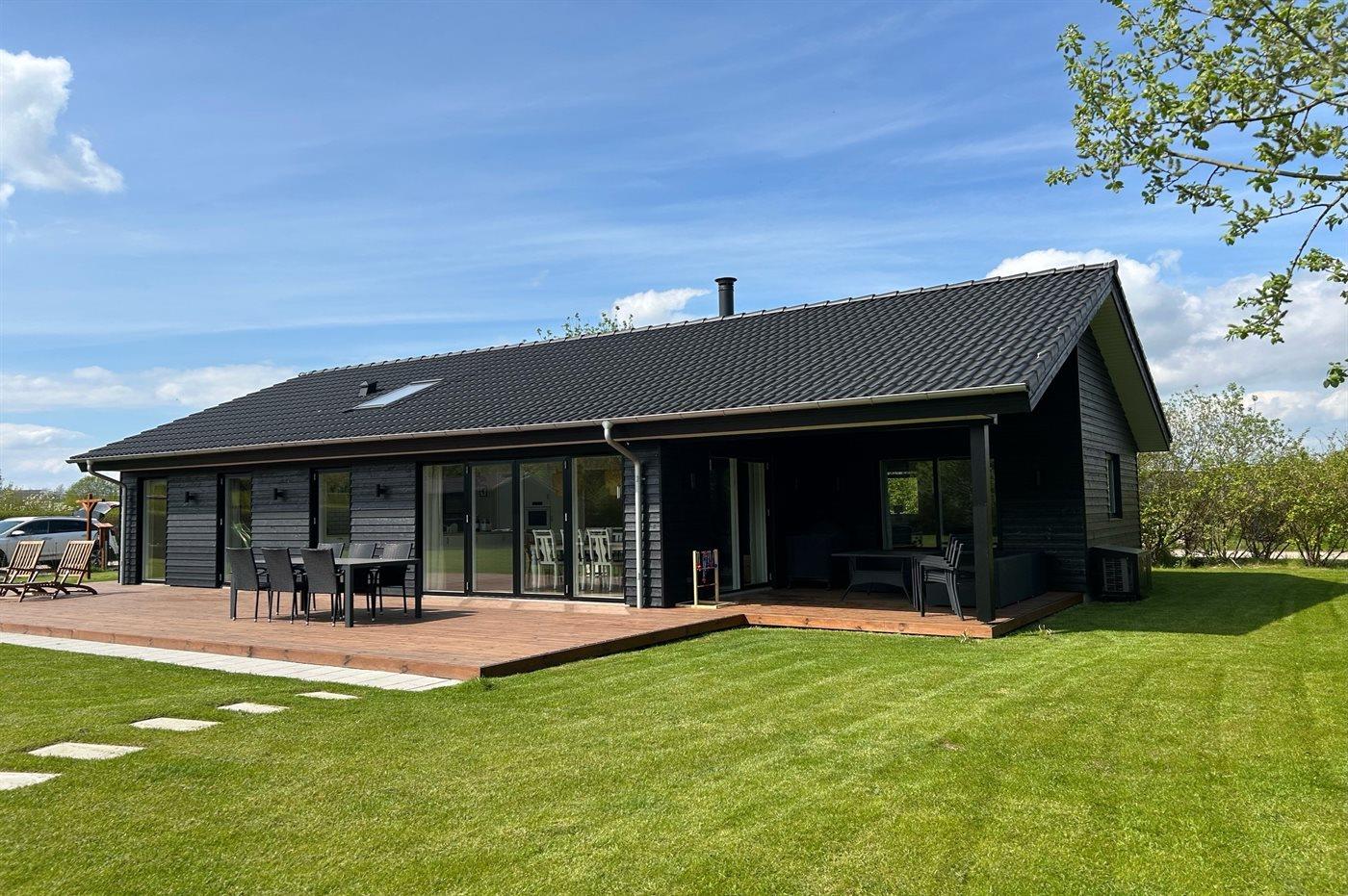 Moderne sommerhus fra 2023 i rolige Skovmose tæt på badestrand og med udendørs spa og sauna.