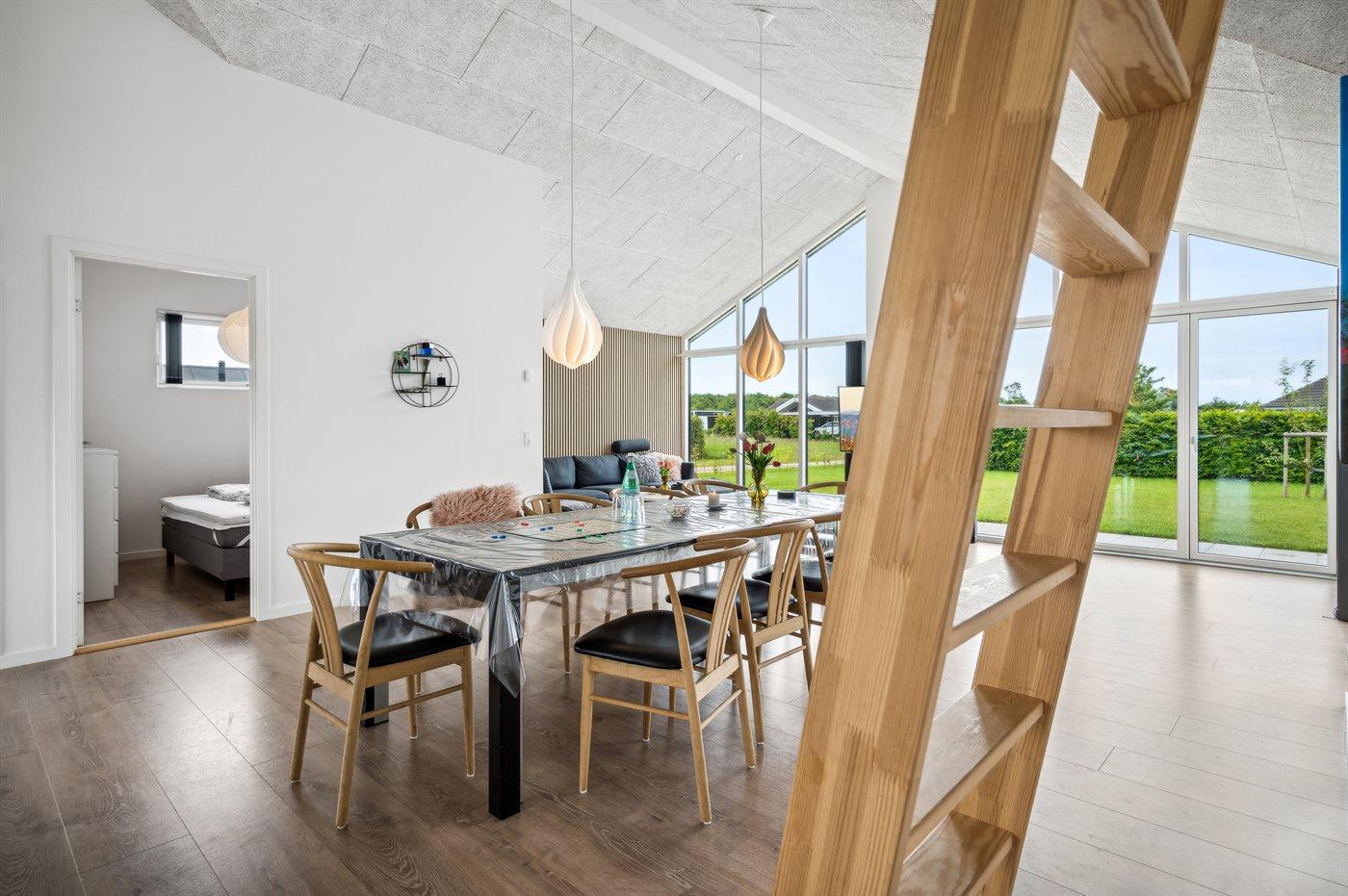 Sommerhuset egner sig til 8 personer. Ferieboligen er på 133 m² og er bygget i 2023. Det er ikke tilladt at medbringe husdyr. Ferieboligen er udstyret med 1 energivenlig luft til vand varmepumpe. Hele ferieboligen har gulvvarme. Frysekapacitet på 50 liter. Til de små er der 1 stk. barnestol.