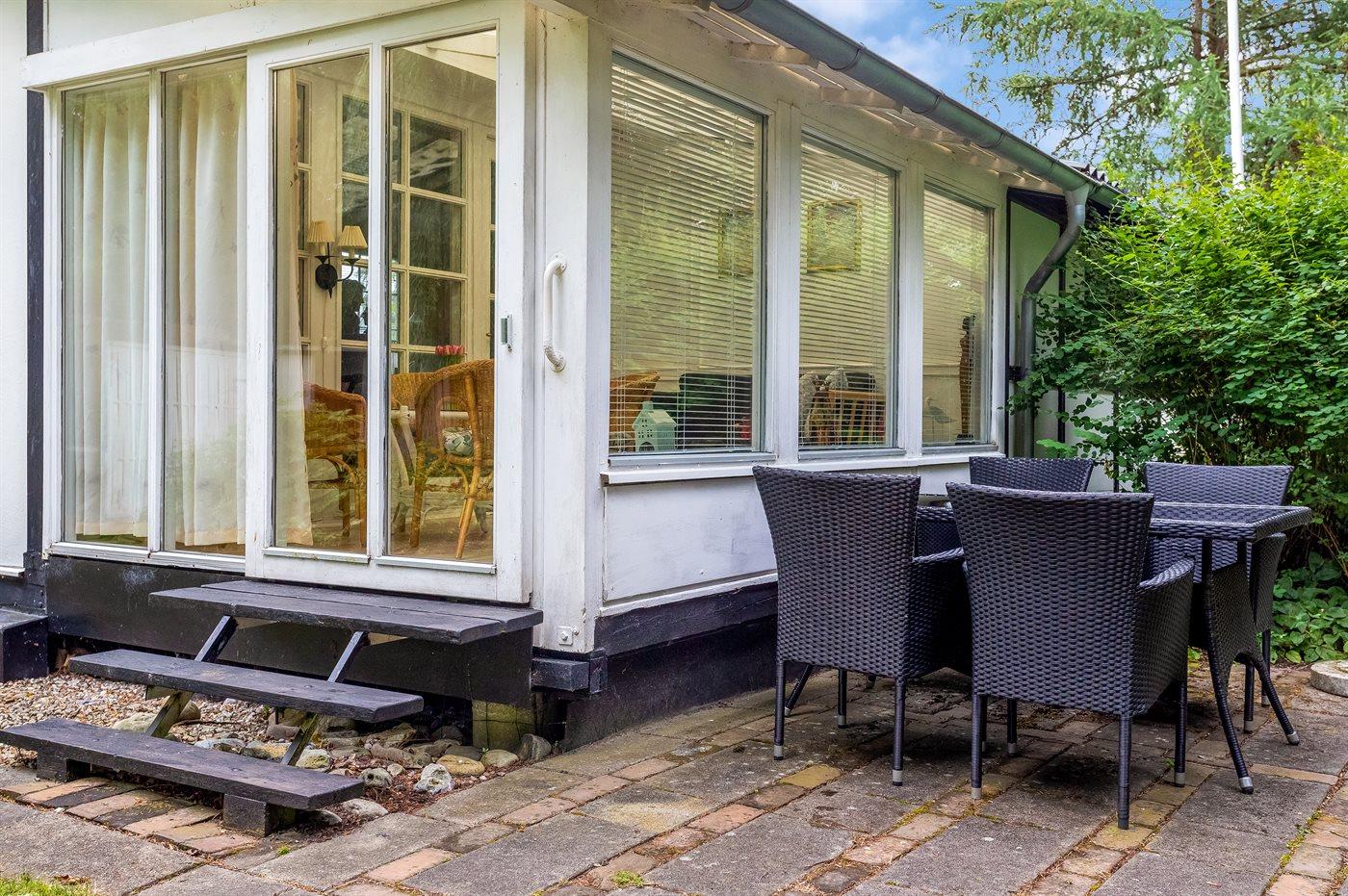 Hyggeligt ældre sommerhus med brændeovn og terrasse kun 300 m fra havet i Skovmose.