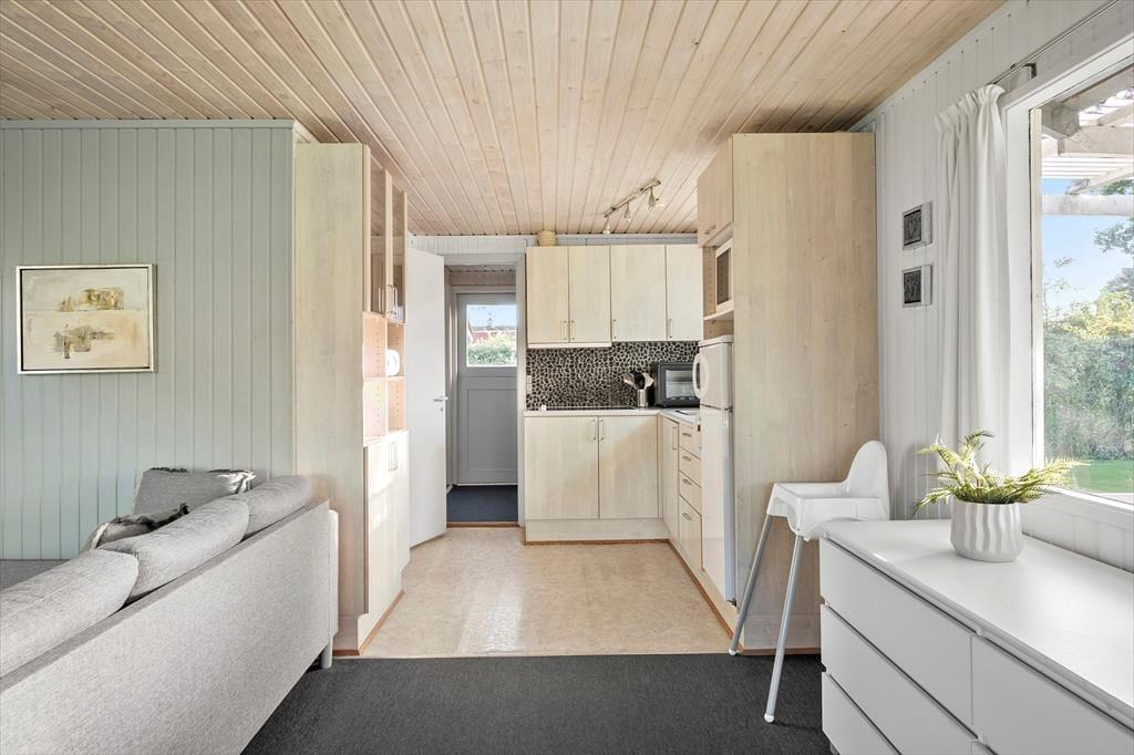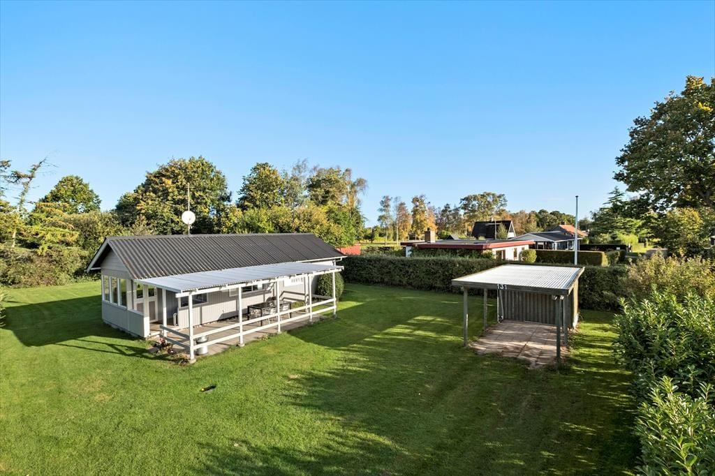 Det lille hyggelige sommerhus er beliggende for enden af lukket vænge i den gamle del af Skovmose med kort afstand til Als’ i særklasse bedste badestrand. Huset indeholder lille entré / vindfang, køkken i åben forbindelse med spise og opholdsstue, soveværelse med dobbeltseng og soveværelse med køjer og endelig badeværelse med bruser. Haven er primært udlagt med græs og indbyder til boldspil og leg. Find en skyggefuld plet på plænen eller terrassen med en god bog og en kop kaffe mens ungerne får brugt lidt af den ungdommelige energi.