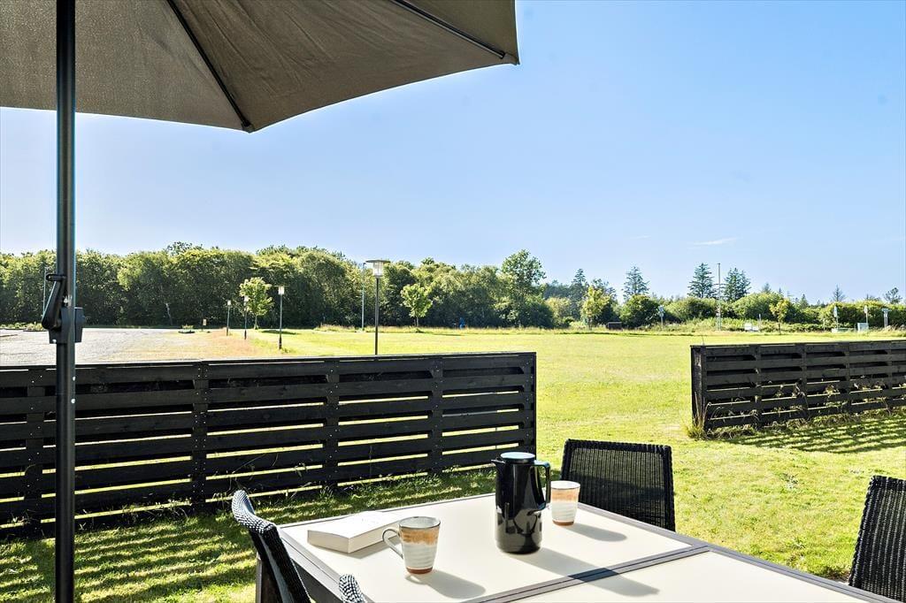 Fra soveværelset har du direkte adgang til en østvendt terrasse, så her kan du smutte ud, hvis du vil strække kroppen i morgensolen efter en god og lang nats søvn. Du kan selvfølgelig også tage morgenkaffen med herud, og senere på dagen, når du vender hjem efter udflugterne til skov eller strand, kan du slå dig ned på den vestvendte terrasse for at nyde de sene solstråler, den friske luft og Slettestrands rolige atmosfære. Foretrækker du skygge, kan du slå parasollen op, inden du sætter dig godt til rette i en af havestolene.